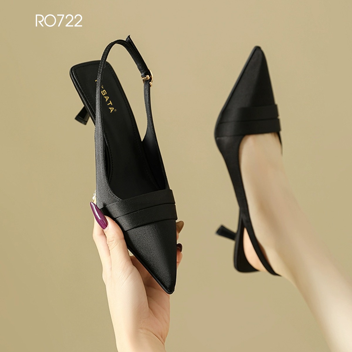 RO722 – Giày cao gót bít mũi hở gót thanh lịch, chuẩn style công sở hiện đại Thiết kế bít mũi nhọn phối quai hậu giúp cố định gót chân, không đau chân khi di
