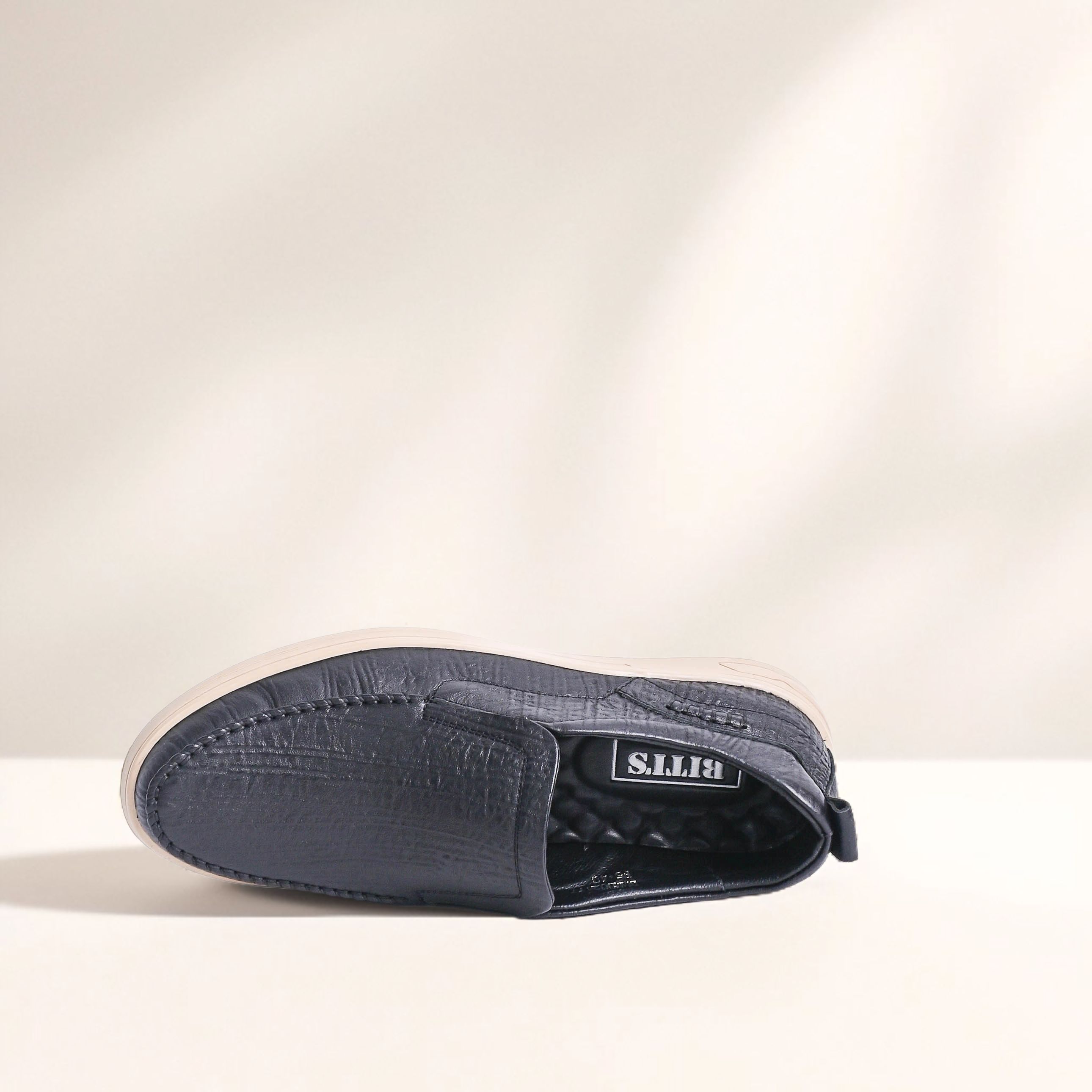 Thiết kế: • Kiểu dáng giày lười hiện đại, dễ mang – dễ phối đồ • Tông màu đen sang trọng, phù hợp cả đi làm lẫn đi chơi • Đường chỉ may tinh tế, viền mũi chắc chắn – tăng độ bền và tạo điểm nhấn thủ công