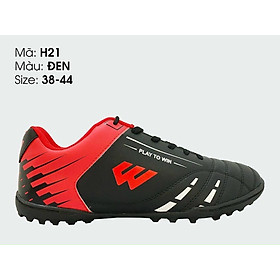 - Điểm nhấn : Mũ giày được làm băng PU "" poly Urethane "" nhẹ và đặc biệt rất mềm mại, không gây hôi chân, thân thiện với môi trường. Size trẻ em: 33,34,35,36,37 Size người lớn: 38,39,40,41,42,43,44 Mục đích sử dụng : Đá banh,đá bóng Mẫu H21 có 4 màu: đen, xanh dương, đỏ, vàng Sản phẩm gồm giày và tặng kèm 1 đôi tất đá bóng cao cổ