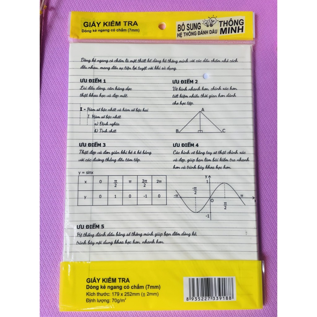 Giấy kiểm tra 4 ô ly dòng kẻ ngang có chấm thích hợp cho học sinh từ lớp 1 đến lớp 5 Là sản phẩm chất lượng cao 1 tập gồm 25 tờ đôi. Độ