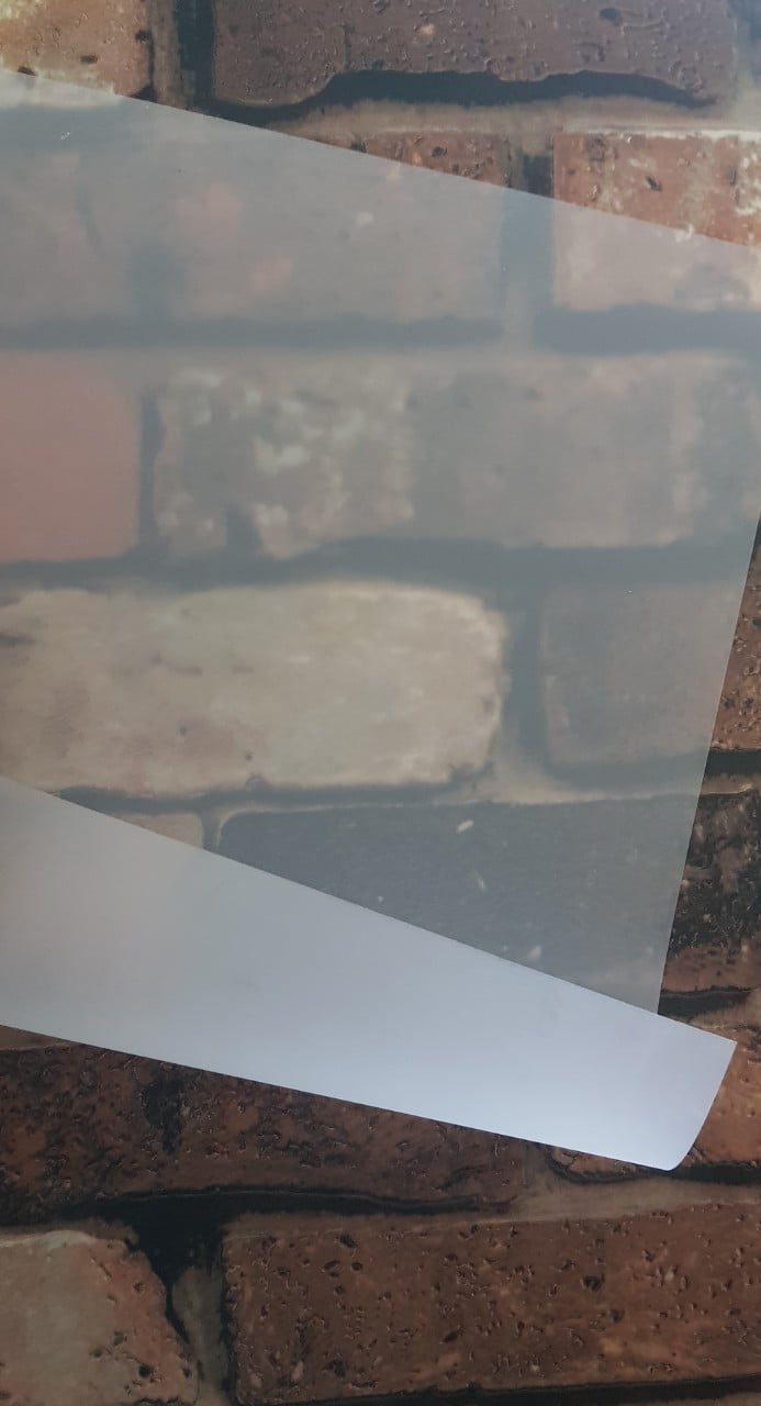 Giấy nhựa trong mờ cũng là dạng giấy nhựa trong tuy nhiên độ trong kém hơn so với giấy nhựa trong suốt. Các vật phẩm nhìn qua giấy nhựa trong mờ tương tự như việc phủ một lớp màng lên thủy tinh. Tuy nhiên, ánh sáng vẫn có thể qua trực tiếp tạo nên sự đặc biệt cho các sản phẩm in bằng dạng giấy này.