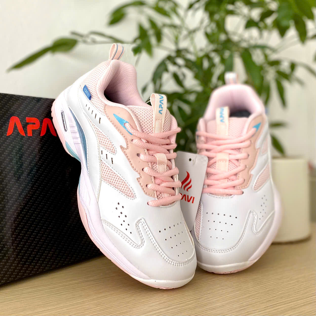 - Thuộc top những dòng giày cho phái nữ, giày cầu lông, bóng chuyền, pickleball Apavi APV - A020 sở hữu form dáng nữ tính, xinh xắn đem đến sự trẻ trung, năng động cho người chơi.