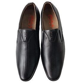MÔ TẢ SẢN PHẨM: GIÀY TÂY NAM  – THANH LỊCH & TINH TẾ - Thiết kế sang trọng – Đơn giản mà đẳng cấp - Kiểu slip-on không dây, tiện lợi khi mang và tháo. - Form giày ôm vừa vặn, mũi tròn nhẹ giúp tôn dáng bàn chân. - Phong cách cổ điển pha hiện đại, phù hợp cho công sở, sự kiện hay gặp gỡ đối tác. - Chất liệu cao cấp – Bền đẹp theo thời gian - Thân giày làm từ da tổng hợp cao cấp, mềm mịn, bóng nhẹ, chống thấm nước nhẹ. - Lót trong êm ái, thoáng khí, tạo cảm giác dễ chịu khi di chuyển nhiều giờ. - Đế giày chắc chắn – Êm chân, bám tốt - Đế cao su chống trượt, độ ma sát cao, đảm bảo bước đi vững vàng. - Có độ đàn hồi tốt, giảm lực tác động khi di chuyển, giúp êm chân cả ngày dài. - Chi tiết tinh tế – Nâng tầm phong thái quý ông - Hai bên thân giày được thiết kế thun co giãn, giúp dễ mang và ôm chân chắc chắn. - Đường may sắc sảo, tạo nên vẻ hoàn thiện chuẩn chỉnh cho từng chi tiết. Phù hợp cho: - Doanh nhân, nhân viên văn phòng, giáo viên, hay người yêu thích phong cách lịch lãm. - Lý tưởng cho các dịp hội họp, phỏng vấn, sự kiện hoặc đi làm hằng ngày.