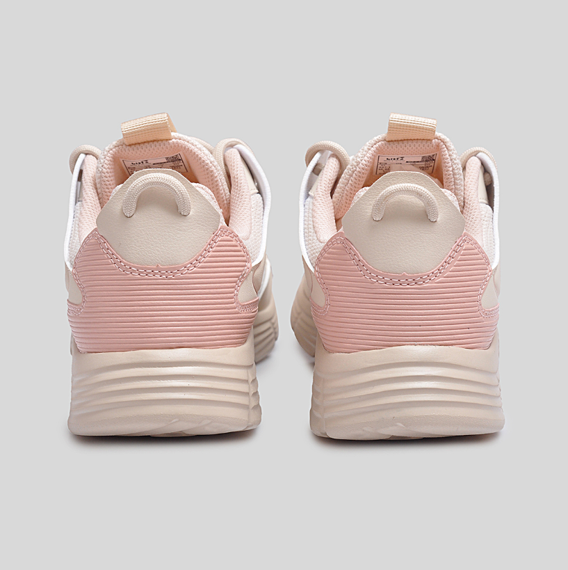 Đế giày - lựa chọn chất liệu Phylon làm nên đế giày thể thao cho các chị em. Vì tính chất nổi bật của vật liệu này là trọng lượng siêu nhẹ (nặng chỉ 300g/chiếc) và độ đàn hồi cao. Nhờ đó, phần lớn khách hàng sử dụng sản phẩm ngay từ lần đầu tiên đều có cảm giác đôi chân “nhẹ như bay”, bước đi thoải mái và thỏa thích vận động ở mọi tư thế theo cách riêng mà không lo đau mỏi chân. - Mặt đế thiết kế thêm những rãnh chống trượt, bố trí dày đặc nhằm tăng độ ma sát. Qua đó giúp người mang vận động thoải mái, bước đi vững chắc và bảo đảm an toàn tối đa, nhất là khi di chuyển trên những địa hình trơn nhẵn hoặc thời tiết ẩm ướt. Thân giày - Thân giày áp dụng công nghệ đan 2 sợi độc đáo. Nhờ vậy, sản phẩm vô cùng nhẹ và thoáng, mang lại cảm giác thoải mái nhất có thể cho người sử dụng. Không những vậy, công nghệ đan 2 sợi còn bảo đảm độ bền chặt của từng chi tiết như cổ giày, quai giày, dây giày… giữ đúng form dáng lâu dài, ít biến dạng hoặc giãn sau một thời gian sử dụng. - Bên cạnh đó, thiết kế thân giày được cải tiến mạnh mẽ bằng chất liệu vải canva, bảo đảm cảm giác thoải mái nhất có thể và hạn chế nóng bức, bí bách nếu phải mang giày trong thời gian dài. -