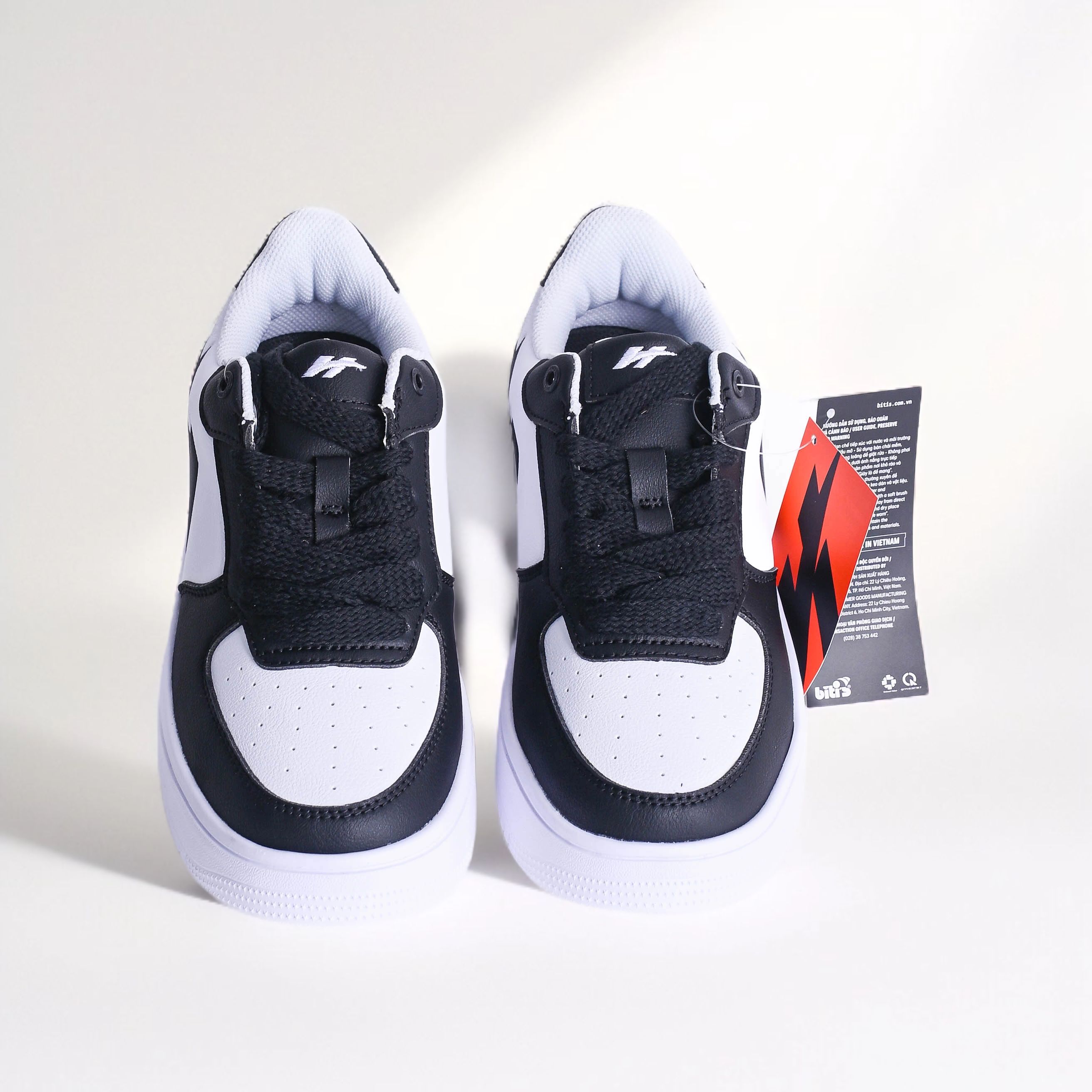 Mô tả sản phẩm giày thể thao phối màu đen - trắng cá tính - Thiết kế thời thượng: Giày thể thao mang phong cách hiện đại với kiểu dáng low-cut, dễ phối cùng nhiều trang phục từ năng động đến streetstyle. - Tông màu nổi bật: Sự kết hợp giữa trắng tinh tế và đen mạnh mẽ, tạo nên vẻ ngoài cá tính, phù hợp cho cả nam và nữ. - Biểu tượng sấm sét độc đáo: Logo hình tia sét nổi bật bên hông giày không chỉ là điểm nhấn thiết kế mà còn thể hiện tinh thần năng động, bứt phá. - Chất liệu cao cấp: - Da tổng hợp mềm mại, dễ vệ sinh. - Lót giày êm ái, thoáng khí, hỗ trợ di chuyển thoải mái cả ngày. - Đế cao su đúc nguyên khối: Bền bỉ, chống trơn trượt tốt – lý tưởng cho mọi hoạt động thường nhật hoặc thể thao nhẹ.  Phù hợp với: - Học sinh, sinh viên, nhân viên văn phòng trẻ trung. - Các bạn yêu thích style basic, sporty hoặc cá tính. - Đi học, đi chơi, dạo phố, du lịch,… -