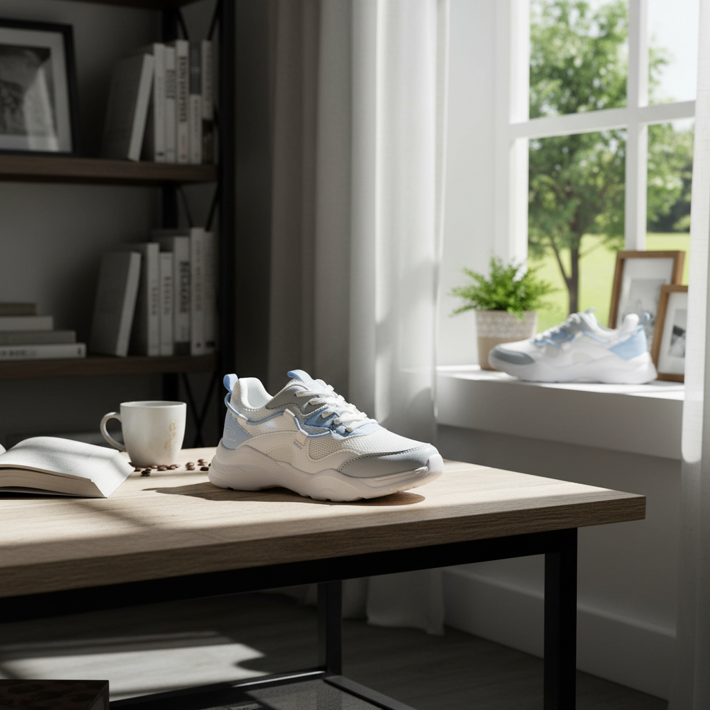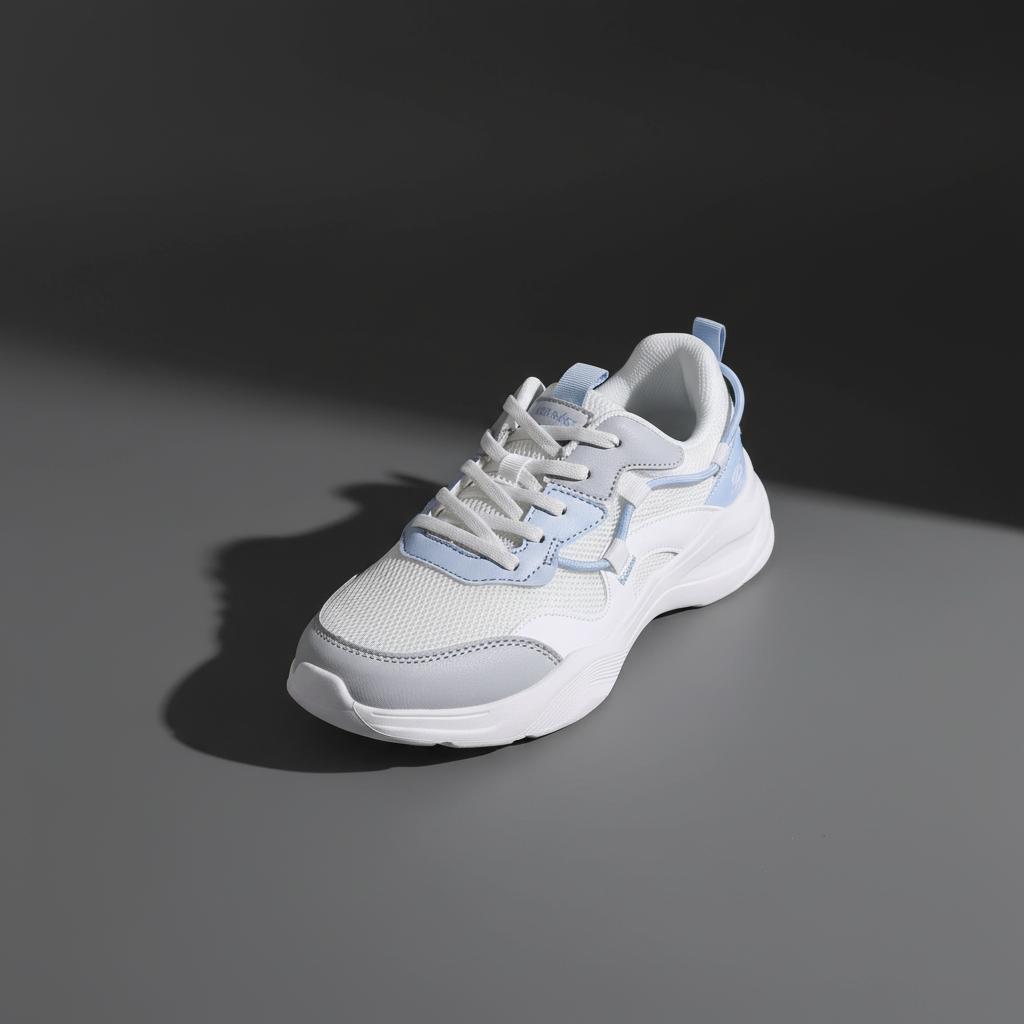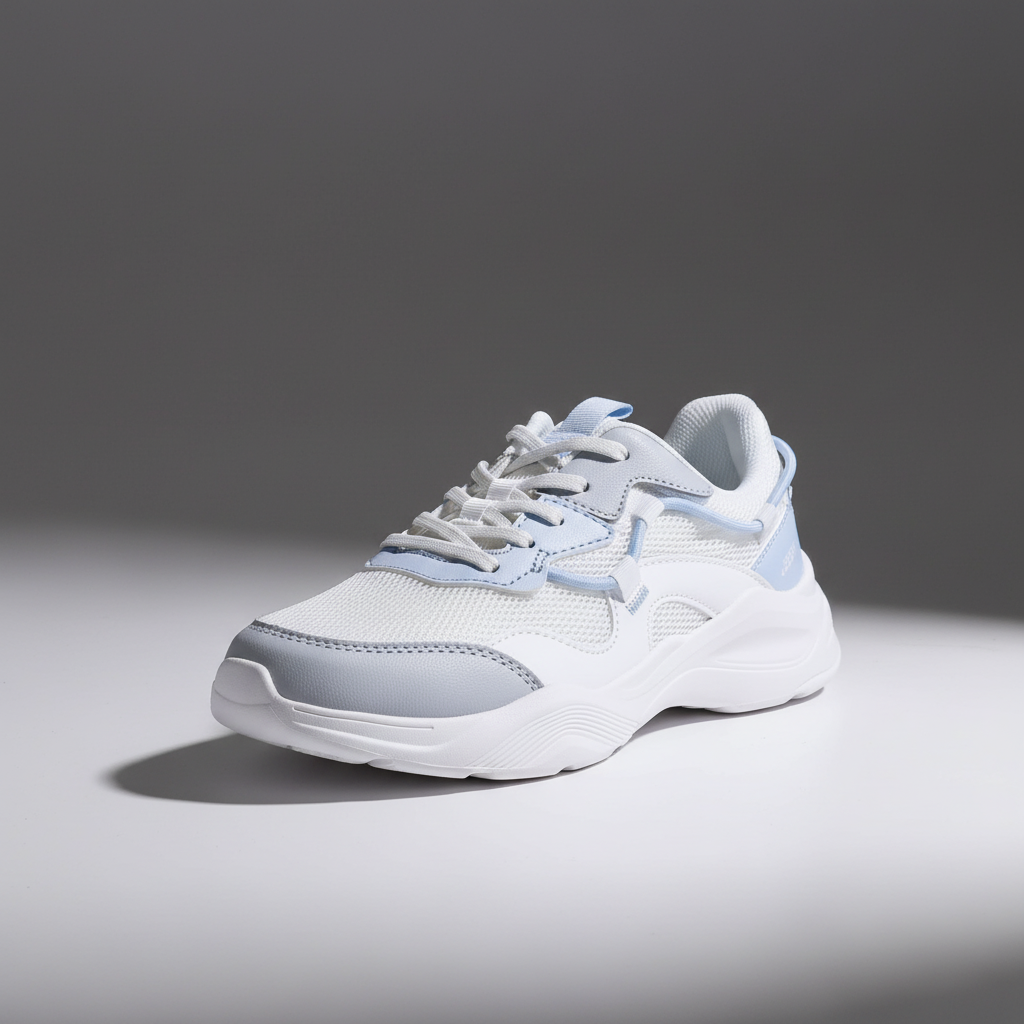 Tên sản phẩm: Giày thể thao thời trang unisex trắng xanh pastel 1. Thiết kế & Kiểu dáng - Phong cách hiện đại: Thiết kế trẻ trung, năng động phù hợp cả nam và nữ. - Tông màu trắng kết hợp xanh pastel mang lại cảm giác thanh thoát, dễ phối đồ. - Form dáng thể thao khỏe khoắn, phần mũi bo tròn và đường viền mềm mại giúp tôn dáng bàn chân. 2. Chất liệu & Cấu trúc - Upper (thân giày): Kết hợp vải lưới thoáng khí và da tổng hợp cao cấp, giúp giày nhẹ và thoải mái. - Đế giữa (Midsole): Làm từ EVA đàn hồi cao, hỗ trợ giảm chấn khi di chuyển. - Đế ngoài (Outsole): Cao su chống trượt với rãnh bám tốt, đảm bảo an toàn khi vận động. - Lót trong: Êm ái, thoáng khí, hạn chế mùi hôi khi mang lâu. 3. Công năng & Ứng dụng - Phù hợp cho nhiều hoạt động: đi học, đi làm, đi chơi, dạo phố hoặc thể thao nhẹ. - Trọng lượng nhẹ, tạo cảm giác thoải mái cả ngày. - Dễ phối với nhiều phong cách: quần jeans, váy thể thao, hoặc đồ streetwear. 4. Thông tin thêm - Màu sắc: Trắng – pastel. -