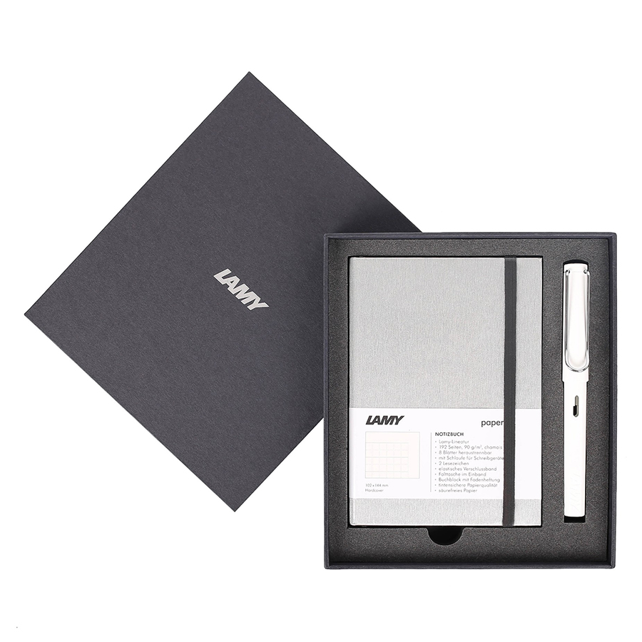 - Gift Set Lamy Notebook A6 Softcover Grey + Lamy Safari White - GSA6-Sa0016 là một phương tiện tuyệt vời cho những người muốn lưu giữ các ghi chú cá nhân dưới dạng chữ viết