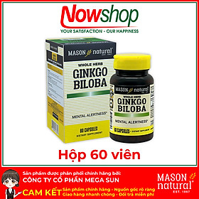 Viên Uống Bổ Não Mason Ginkgo Biloba - Tăng Cường Trí Nhớ, Tuần Hoàn Máu Não Minh mẫn mỗi ngày - Tự tin học tập & làm việc hiệu quả Chiết xuất Ginkgo Biloba 125mg