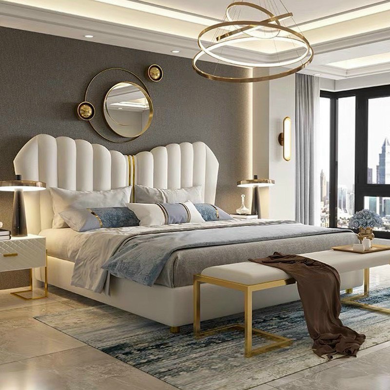 ✨Giường ngủ Tundo hiện đại bọc da cao cấp phối kim loại