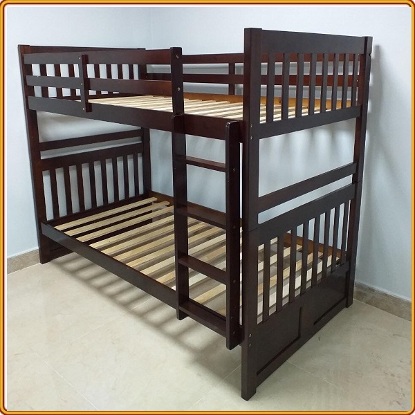 Giường tầng xuất khẩu Derby có kích thước lọt lòng giường trên/dưới là 100x193 cm / 120 x 193 cm, phủ bì 206x128x178 cm. Khoảng cách giữa 2 tầng là 98 cm, cầu thang có