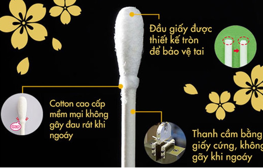 Chất liệu/ thành phần: 100% Bông gòn tự nhiên mềm mại không gây đau rát khi sử dụng kết hợp Chitosan kháng khuẩn bề mặt bông, thân tăm làm bằng nhựa PP cao cấp an toàn cho thời gian sử dụng lâu dài