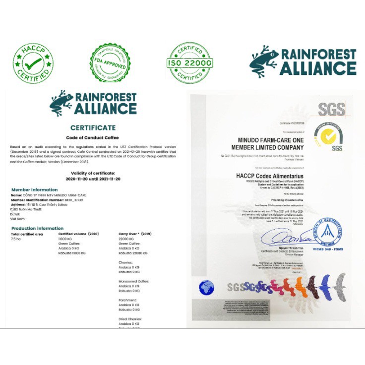 - Độ cao vùng trồng: 450m – 800m Cà phê tại trang trại AEROCO COFFEE được lựa chọn công phu từ những quả cà phê chín đỏ được chăm sóc thiên về hữu cơ và phát triển theo hướng tự nhiên. Sản phẩm cà phê tại trang trại được sản xuất theo quy trình khép kín nghiêm ngặt từ chăm sóc vườn cây, thu hái chọn lọc quả chín, chế biến, bảo quản nguyên liệu đến rang xay và đóng gói nhằm giữ hương vị cà phê thơm ngon tự nhiên với vị cà phê Aeroco đặc trưng tinh tế riêng biệt. Hãy cùng thưởng thức ly cà phê AEROCO COFFEE với hương vị đầy đặn của hoa cỏ trái cây tự nhiên, có vị chua vừa phải, vị đắng hậu ngọt và nồng nàn của xứ sở Ban Mê.