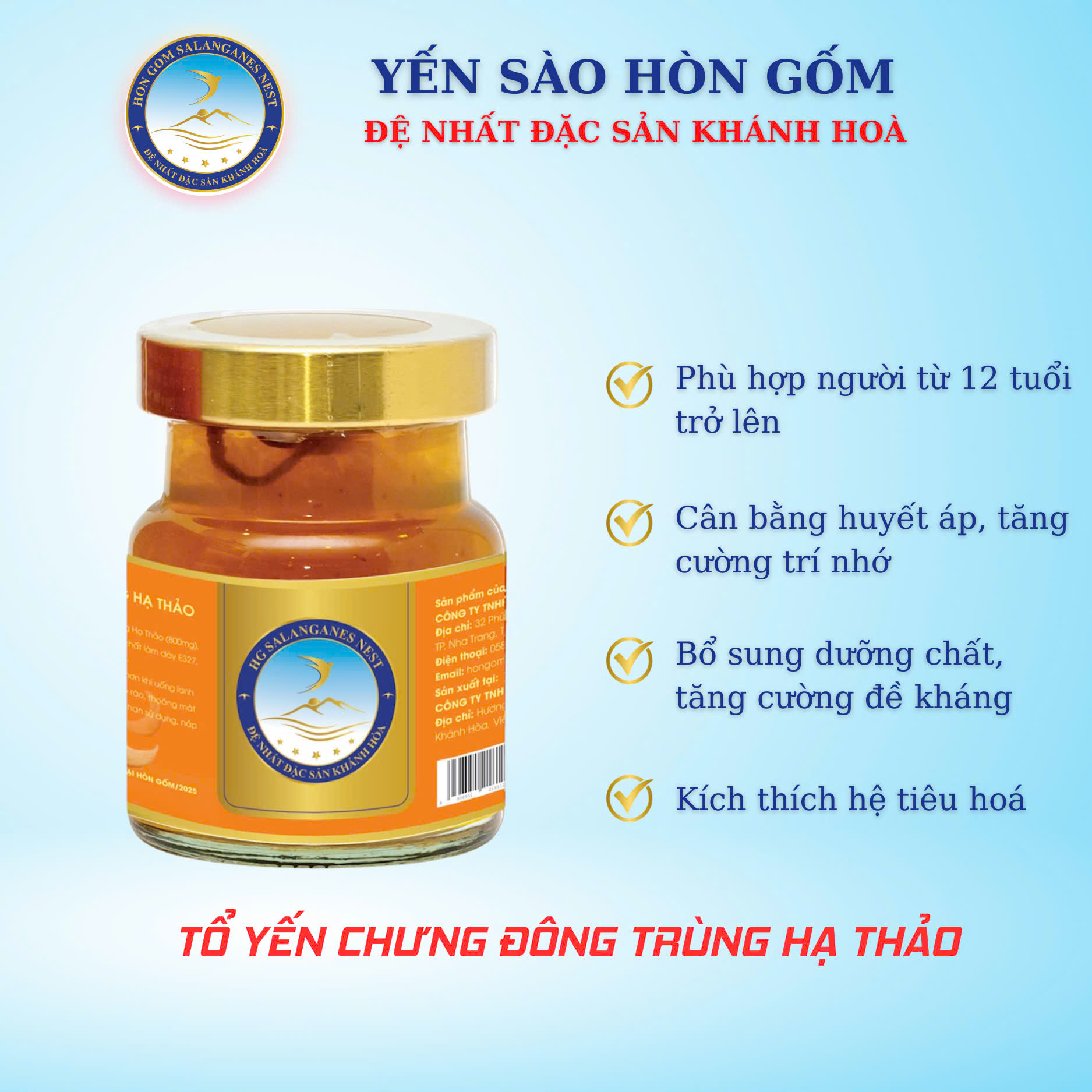 Nước Yến Sào Đông Trùng Hạ Thảo Yến Sào Hòn Gốm Khánh Hòa - Sản phẩm đạt Top 10 Giải thưởng Sao Vàng Thương Hiệu Quốc Gia 2024