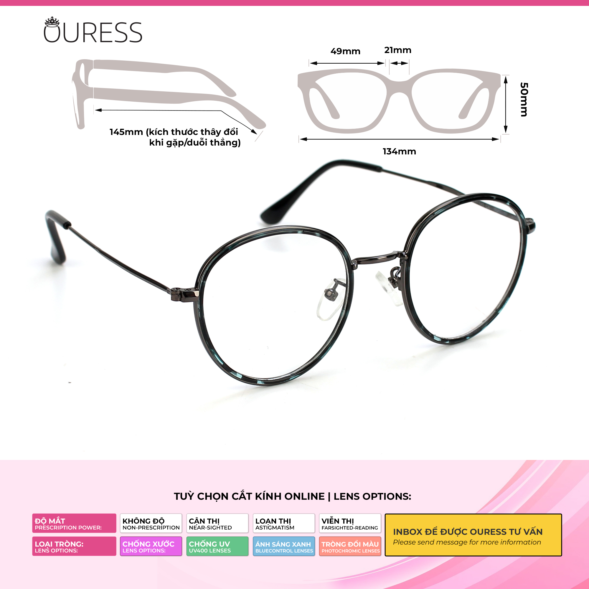 GỌNG KÍNH CẬN HỢP KIM NAM NỮ THỜI TRANG - OURESS ------------------------- Chất liệu : gọng hợp kim kết hợp càng kính hợp kim --------------------------- Gọng hợp kim rất được ưa chuộng và được các