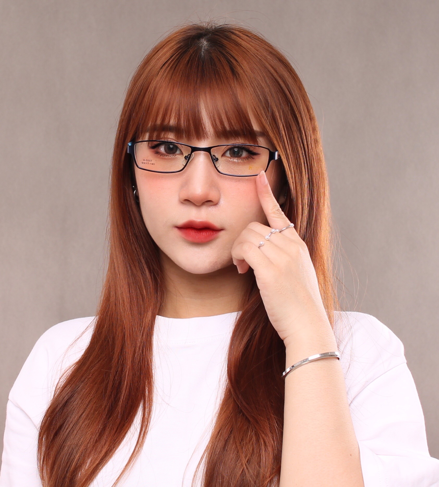 Khung gọng kính là loại nửa khung hay còn gọi là xẻ cước, tạo nên nét đẹp thời trang và nhẹ nhàng thanh thoát trên gương mặt