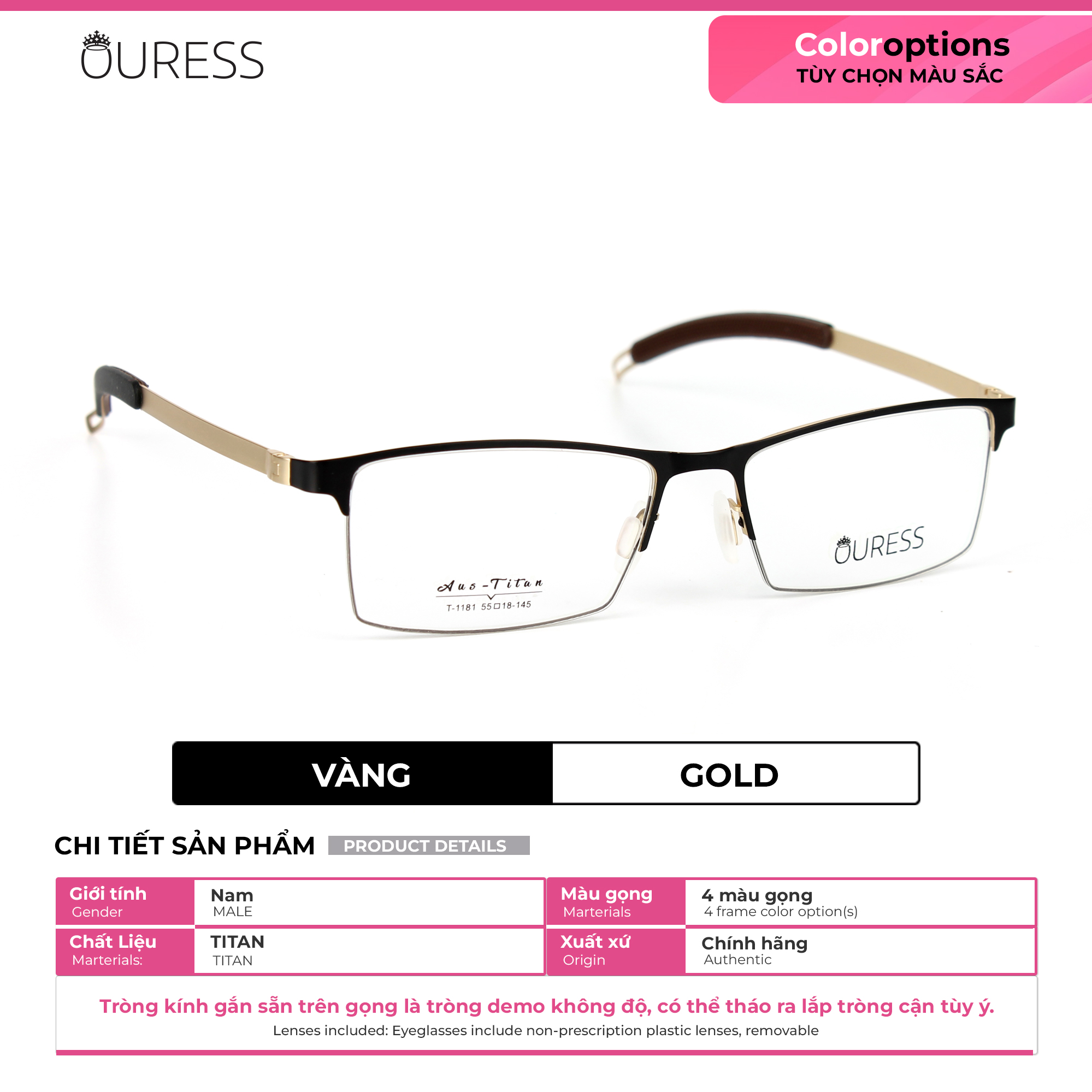 Lưu ý: Quý khách vui lòng cung cấp đầy đủ thông tin như trên cho Ouress trong vòng 02 ngày kể từ ngày đặt hàng. Hết thời hạn mà không nhận được thông tin, Ouress xin phép được gửi mặc định tròng 0 độ để đảm bảo quy định giao hàng của sàn.