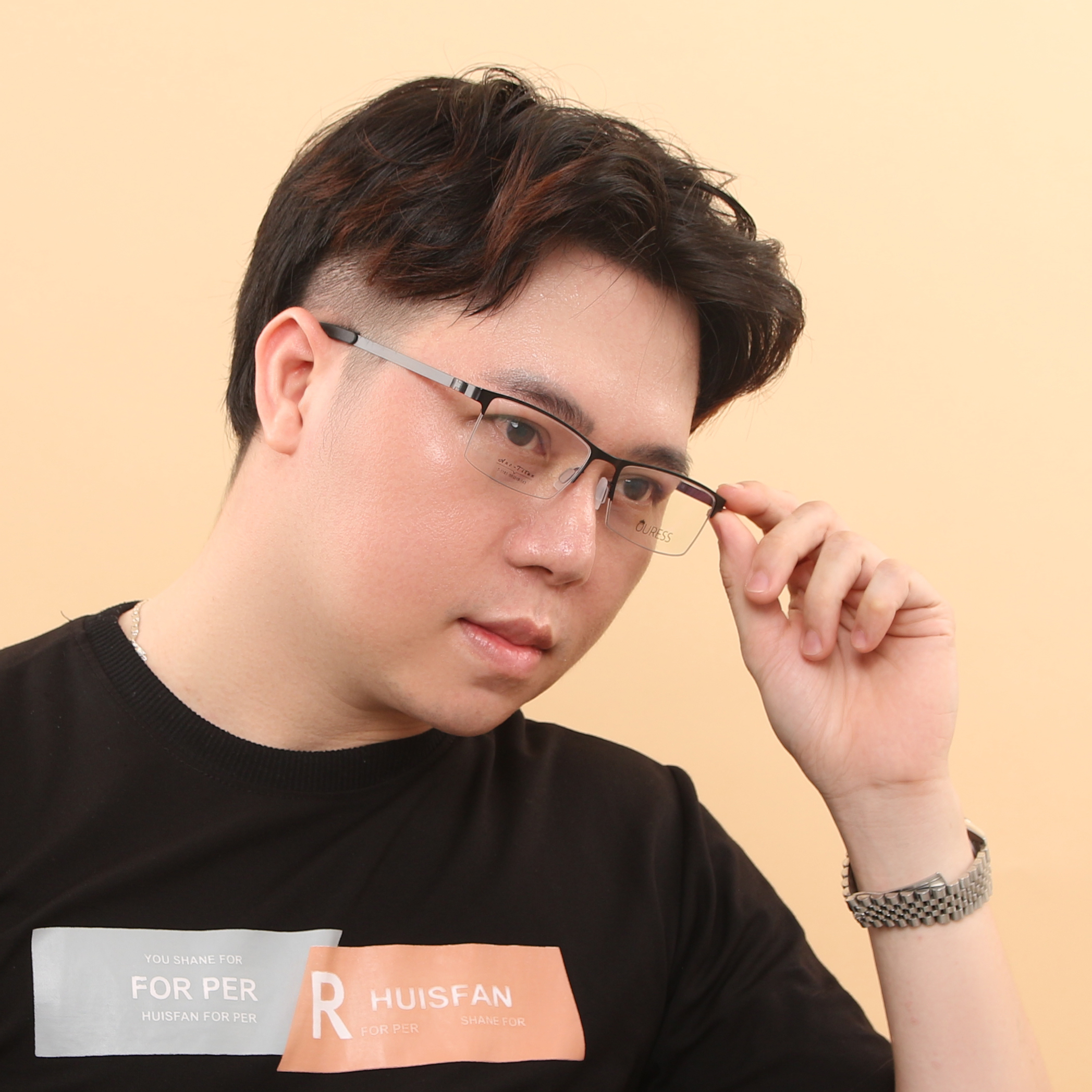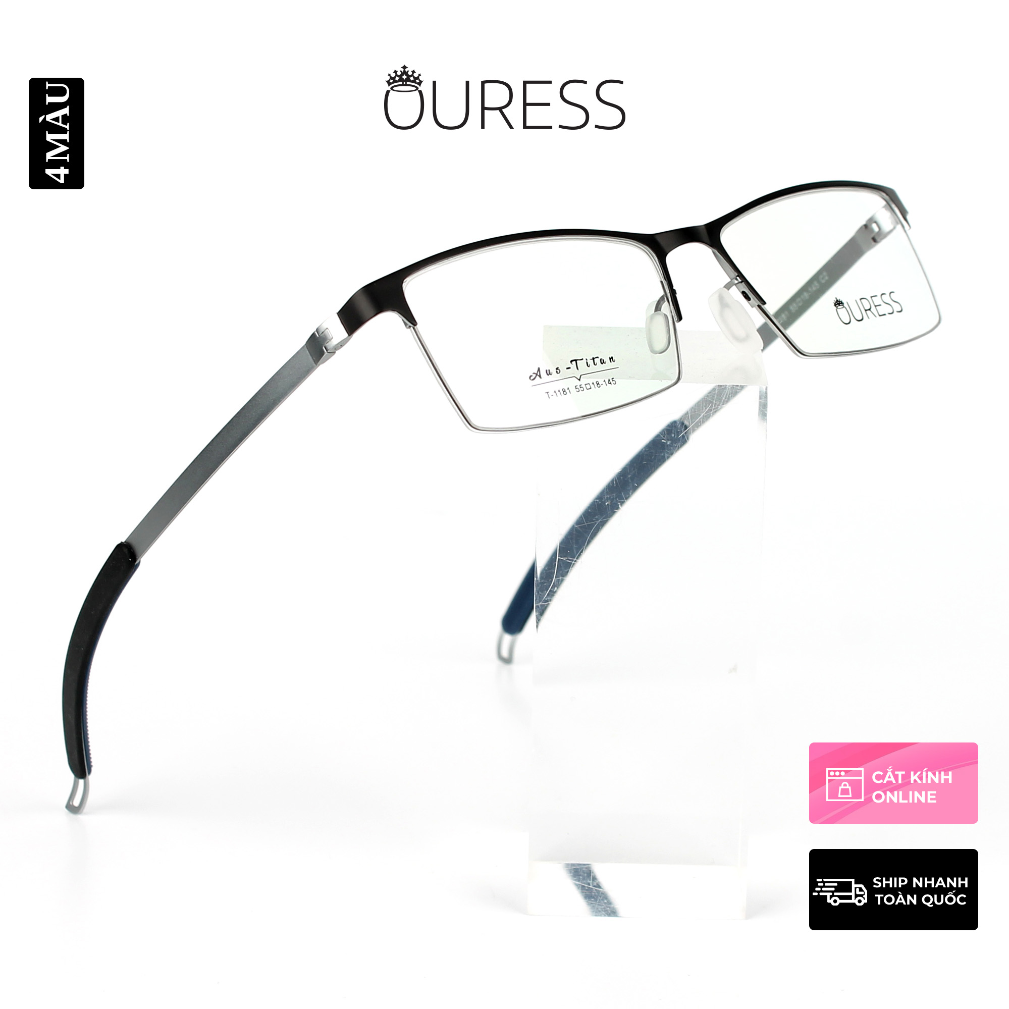 GỌNG KÍNH TITANIUM NỬA KHUNG ( XẺ CƯỚC) CAO CẤP THỜI TRANG NAM