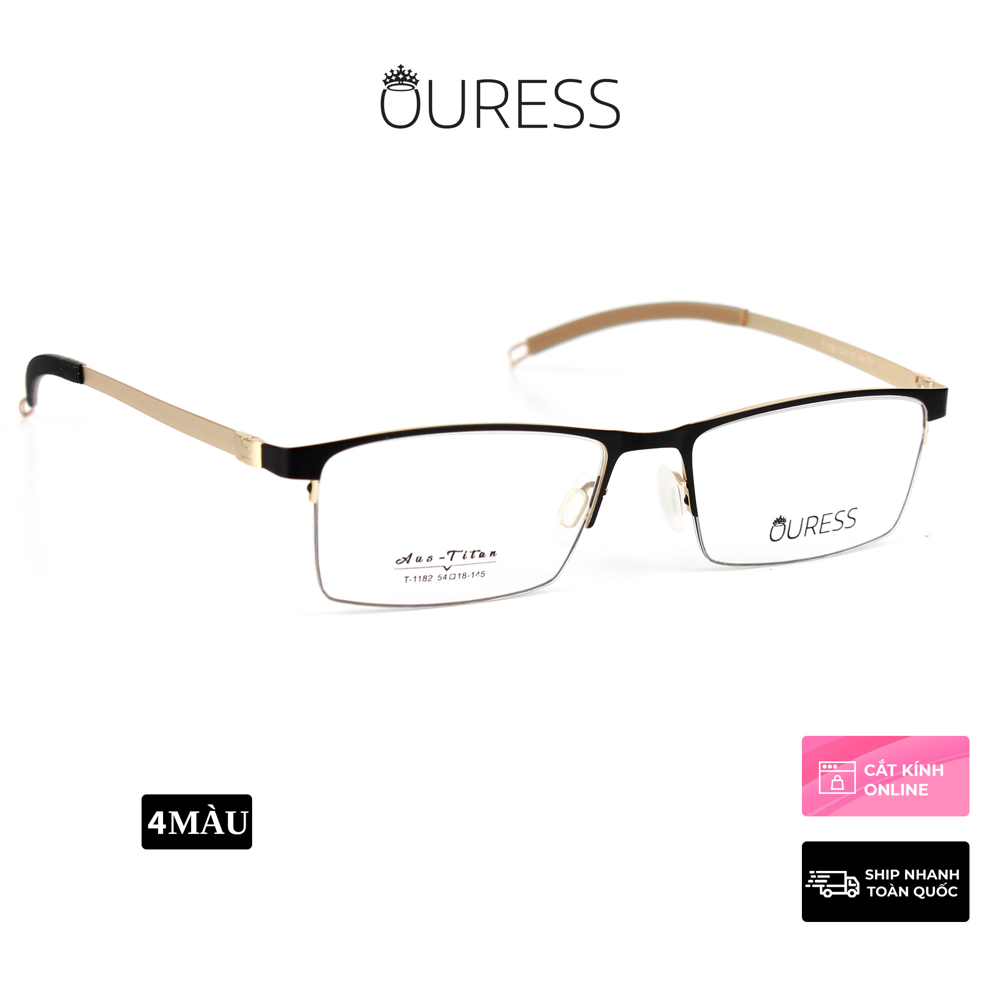 ✨Gọng kính titanium T1182 nửa khung thời trang nam cao cấp siêu nhẹ siêu bền OURESS
