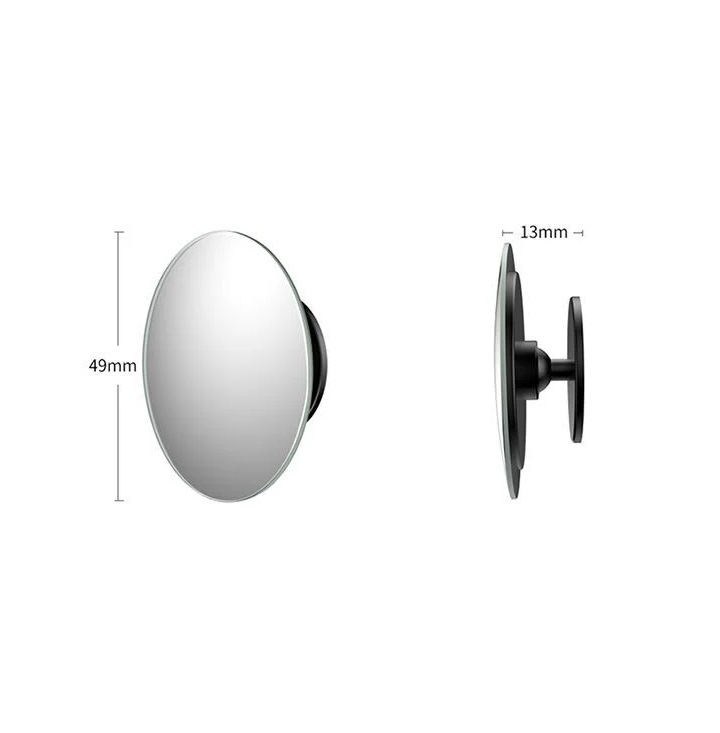 Đây là một cặp gương cầu lồi được thiết kế để gắn trên kính chiếu hậu của xe ô tô mini. Gương này có đế hút chân không, giúp nó bám chắc chắn trên bề mặt kính. Ngoài ra, nó còn có khả năng xoay 360 độ, giúp loại bỏ điểm mù và không bám nước.