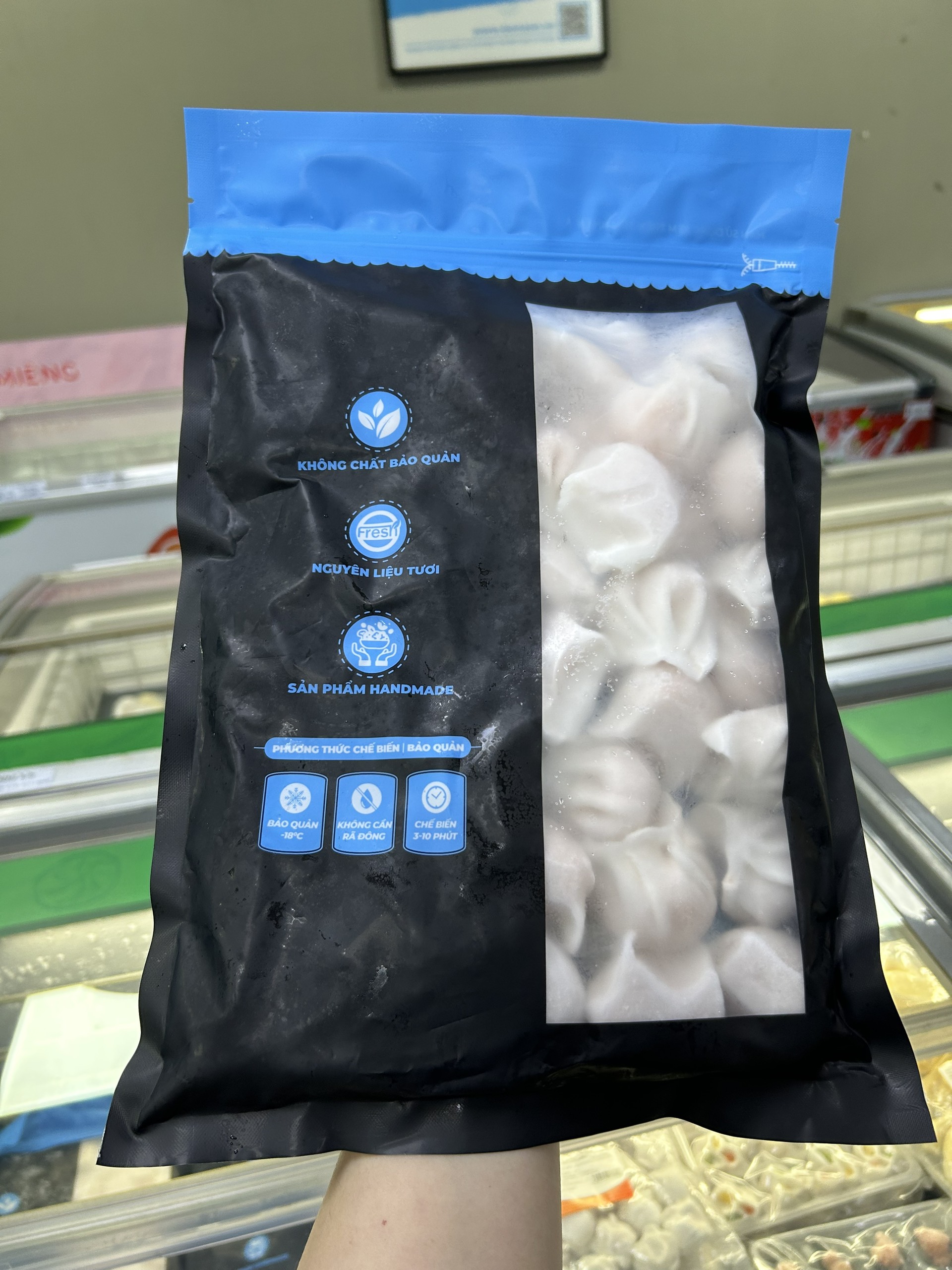 Mua tại TiktokVới sản phẩm tươi sống, trọng lượng thực tế có thể chênh lệch khoảng 10%. ĐỊNH LƯỢNG: 880/gói THÀNH PHẦN: Tôm (43.71%), mỡ heo, măng, tinh bột lúa mì, gia vị khô, gia vị lỏng, vỏ bột há cảo CÁCH CHẾ BIẾN: Không rã đông, hấp ở 100°C khoảng 7 - 8 phút BẢO QUẢN: Bảo quản nhiệt độ -18°C HSD: 12 tháng