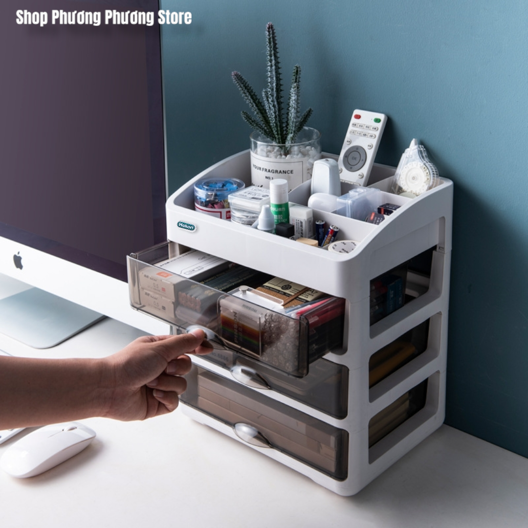 - Kệ mỹ phẩm trang sức 2/3/4 tầng trong suốt là sản phẩm tiện dụng, đẹp mắt giúp chị em xếp gọn mỹ phẩm, nước hoa, trang sức một cách đẹp mắt và sang trọng. - Kệ đựng mỹ phẩm được thiết kế với nhiều ngăn thông minh giúp bạn chứa được các vật dụng trang điểm, son, nước hoa, ngăn kéo giúp chứa đồ trang sức sáng bóng, tránh bụi bẩn.
