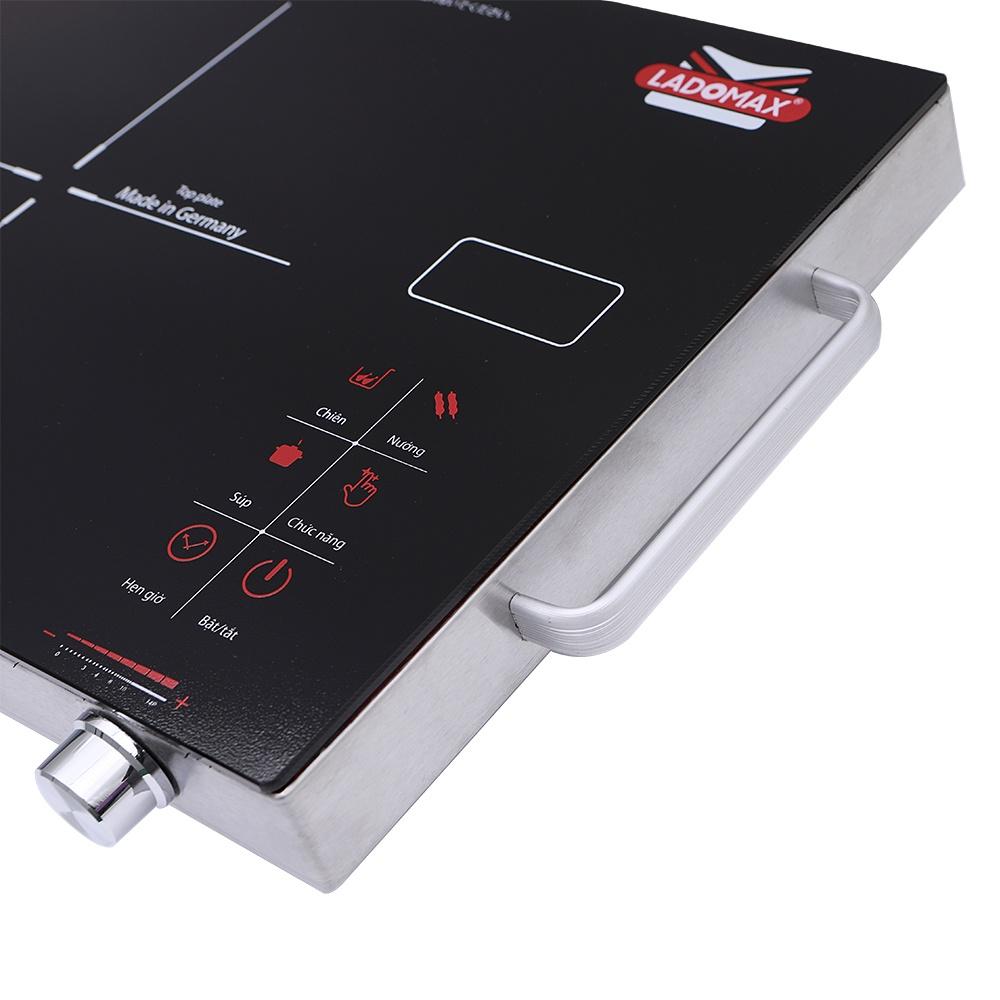 - Mặt bếp hồng ngoại bằng kính chịu nhiệt có khả năng chịu nhiệt tốt, vệ sinh đơn giản: Bếp hồng ngoại Ladomax HA-666 mặt bếp có độ bền cao, luôn sáng bóng, đẹp mắt