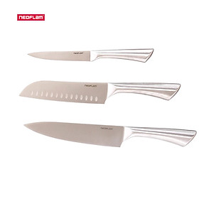 Bộ dao Neoflam gồm 3 dao: Dao chef, dao santoku 7' và dao gọt. Dao được làm từ thép chống gỉ hàm lượng các bon cao, sắc bén và sạch bóng, dễ dàng chế biến thực phẩm và làm sạch.
