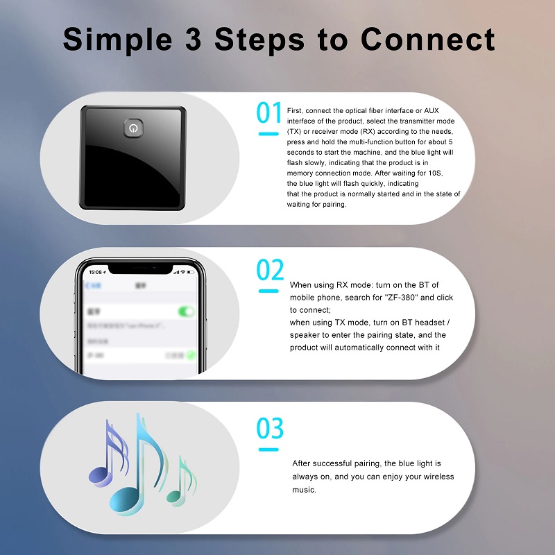 - Kết nối linh hoạt 2 trong 1: FZ-380JA hoạt động như cả bộ thu và phát Bluetooth, giúp bạn dễ dàng kết nối các thiết bị âm thanh không có Bluetooth với nhau, biến mọi thiết bị thành nguồn phát hoặc thu âm thanh tiện lợi.