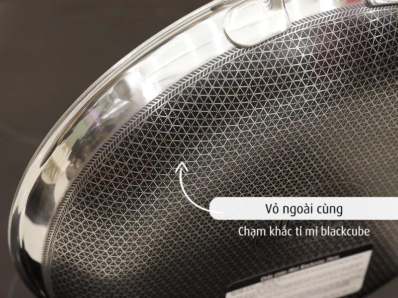 Thân và đáy 3 lớp Triply: inox 304, Nhôm, inox 430| Công nghệ: Blackcube khắc hình lập phương