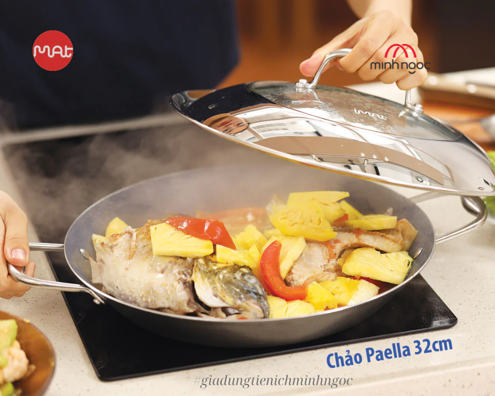 CAM KẾT PHÂN PHỐI SẢN PHẨM CHÍNH HÃNG BẢO HÀNH ĐỔI MỚI CHO LỚP SẢN CHỐNG DÍNH BONG TRÓC TRONG 12 THÁNG.Paella 32cm là một chiếc chảo lòng cực rộng; dùng được đa năng như chiên, xào, nướng. Rất thí...
