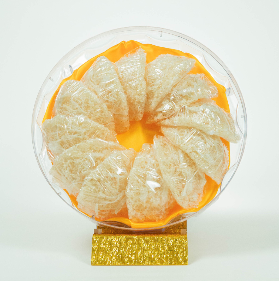 Đặc điểm: Sản phẩm được tinh chế xử lý làm sạch lông, dệt sợi, đóng khuôn thành hình tổ yến tự nhiên, tổ yến nguyên chất, có màu trắng hoặc ngả vàng, cứng giòn, không vị và có mùi tanh nhẹ tự nhiên. Sợi yến vụn, được xếp khéo léo thành khuôn cho mỗi lần sử dụng.