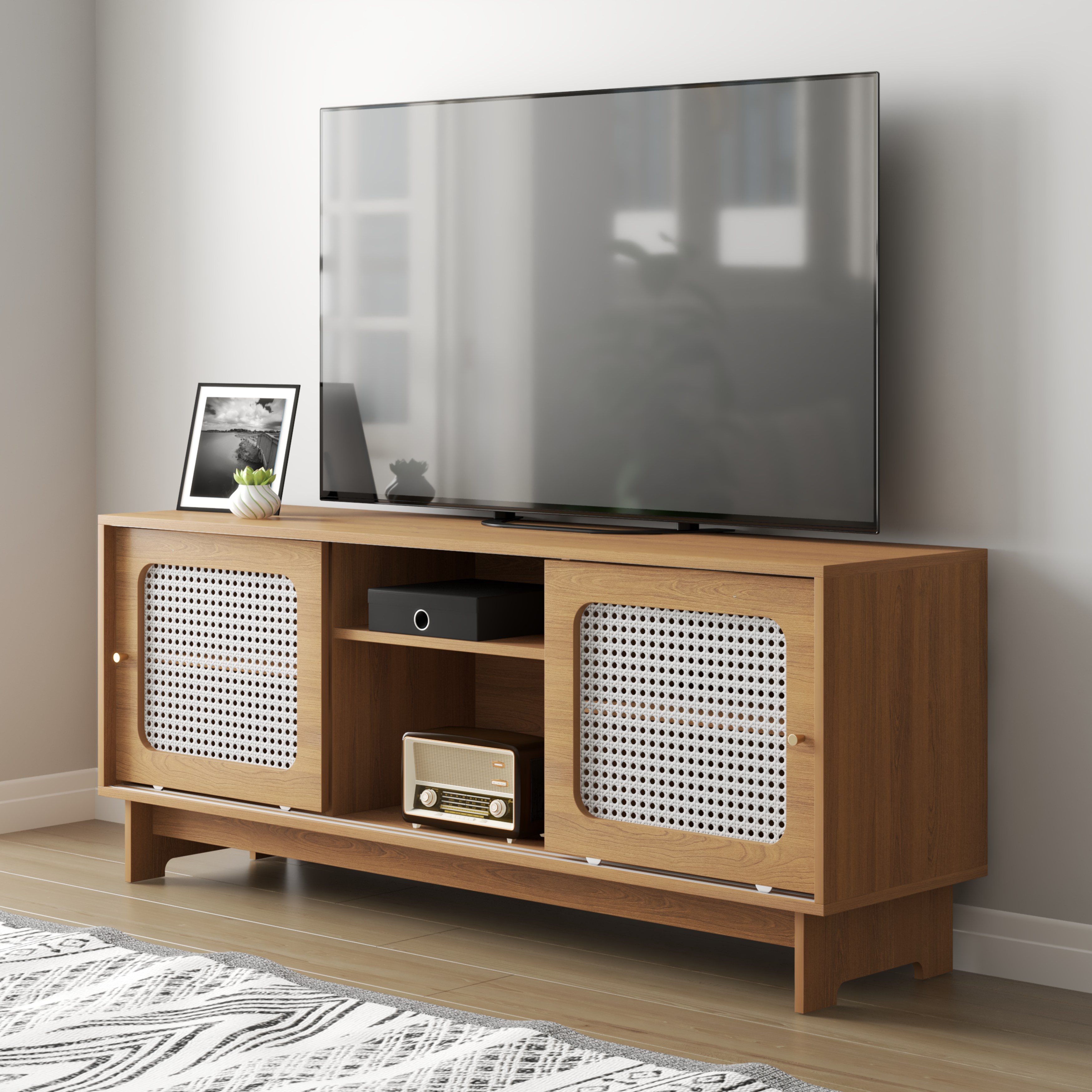 Kệ Tivi gỗ hiện đại SMLIFE Tioga là một sự bổ sung hoàn hảo cho phòng khách của bạn. Kệ tivi Tioga được thiết kế cân đối lấy cảm hứng từ những ngôi đền Nhật
