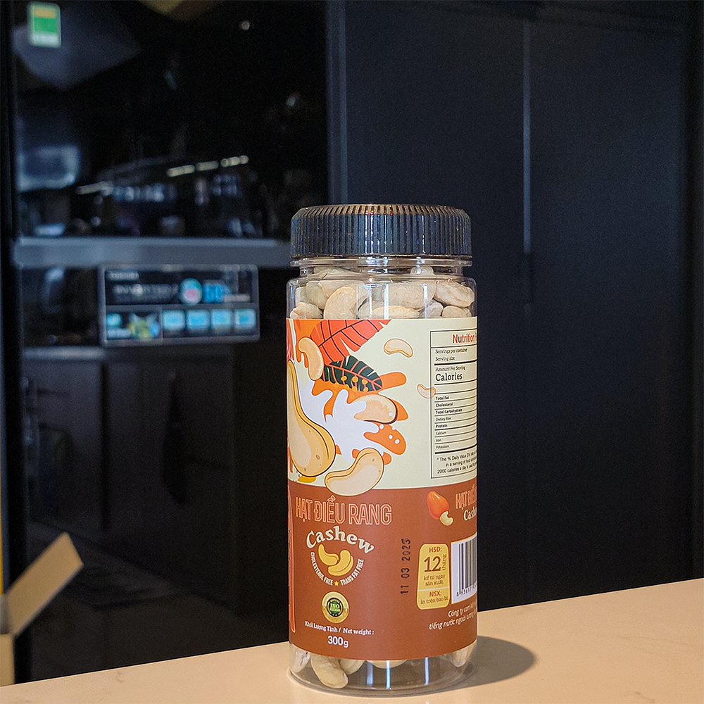 - Thành phần: 100% hạt điều đã rang nguyên vị
