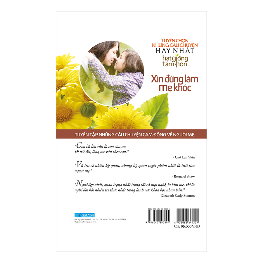 Xin đừng làm mẹ khóc là những câu chuyện giản dị mà đầy ý nghĩa, sâu sắc về người mẹ, về tình mẹ con - một tình yêu thương vô điều kiện và không gì có thể sánh bằng. Trong những trang sách này, bạn sẽ tìm lại được và nhận ra những phút giây đồng cảm trong tình yêu thương, cảm xúc về mẹ, tìm về ký ức tuổi thơ thân thương gắn bó bên mẹ, và cả những suy tư trăn trở về mẹ, về lỗi lầm, về tất cả những gì mẹ đã hy sinh cho chúng Như trong câu chuyện Mẹ và Con - một người mẹ luôn than phiền vì con của cô luôn muốn được ở bên cạnh cô, nhưng cô vì công việc, luôn cảm thấy phiền khi đi cùng con. Rồi đến một ngày, cô cũng hiểu vì sao các con cần cô, nhưng thật buồn, vì khi ấy, con cô đã không còn muốn ở cạnh mẹ nữa. Trong câu chuyện Phép màu của Mẹcho thấy, làm điều tốt cho con, không có nghĩa là nuông chiều con, như người mẹ trong câu chuyện, đã đối với Ken, một đứa trẻ lên 9, bị chứng bại não, khiếm thính và thiểu năng trí tuệ bẩm sinh. Ken thích tấm ván trượt tuyết nhưng không thể trượt với đôi nạng gỗ. Tuy vậy, với tấm lòng người Mẹ, cô đã giúp Ken trượt được với đôi ván trượt dù phải mất vài ngày Ken mới có thể leo lên trèo xuống tấm ván và hai ống quần rách bươm, lộ ra những vết trầy xước rướm máu. Nhờ sự kiên định và tấm lòng của người mẹ mà cậu bé bại não 9 tuổi ngày nào đã trở thành một người đàn ông có một cuộc sống độc lập và có công việc ổn định.