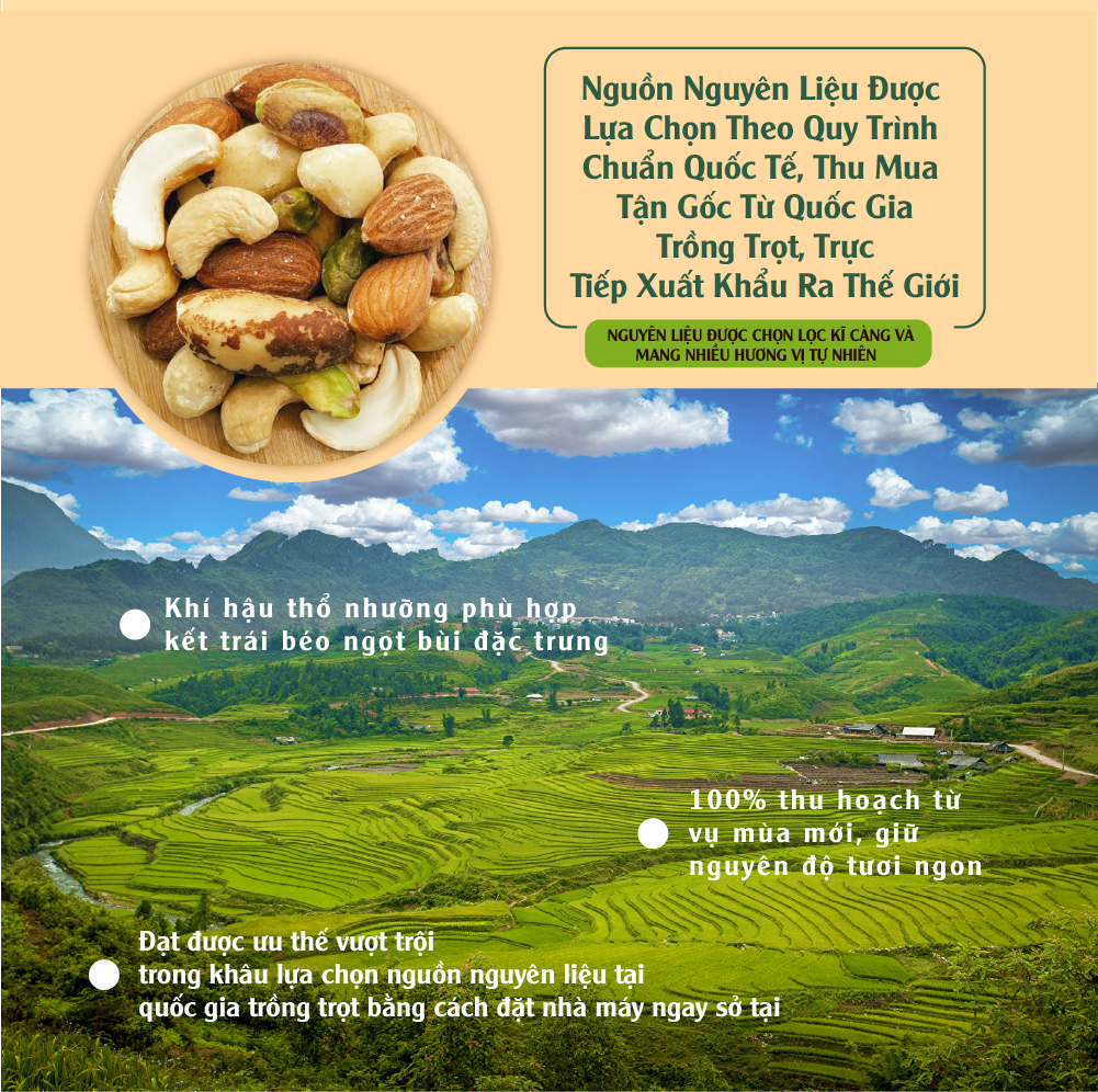 Điều Bể 3/4 REAL FOOD xuất xứ Việt Nam Hạt điều là hạt thuộc họ Anacardium occidentale có nguồn gốc từ Brazil được trồng nhiều ở các tỉnh phía Nam của Việt Nam. Ngoài hương vị thơm