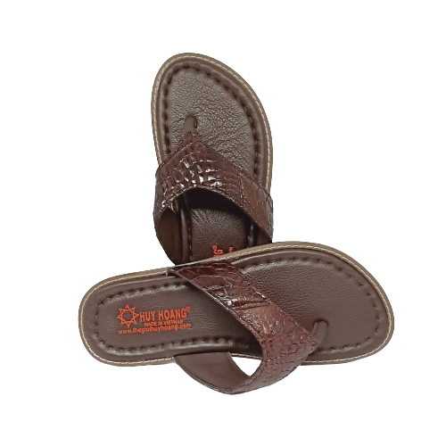 Dép nam Huy hoàng da bò xỏ ngón đan viền màu nâu 7727