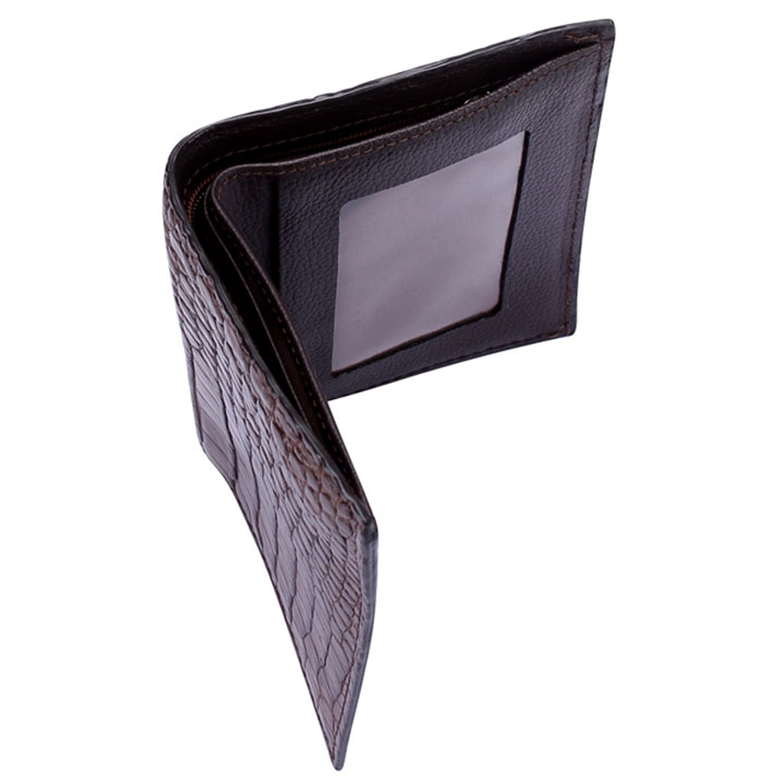 Ví đứng da cá sấu kiểu đứng màu nâu đất