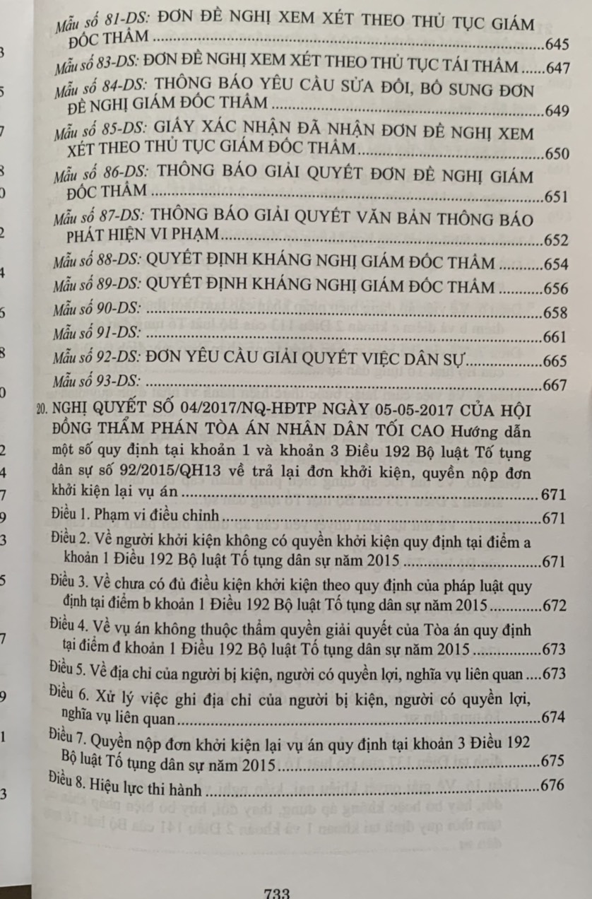 HỆ THỐNG CÁC NGHỊ QUYẾT CỦA HỘI ĐỒNG THẨM PHÁN TÒA ÁN NHÂN DÂN TỐI CAO VỀ DÂN SỰ VÀ TỐ TỤNG DÂN SỰ TỪ NĂM 1990 ĐẾN 2023 (Dành cho Thẩm phán, Thẩm tra viên, Hội thẩm, Kiểm soát viên, Luật sư và các học viên tư pháp )