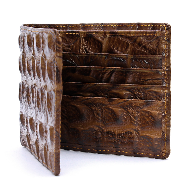 ✨HJ2118 - Bóp nam Huy Hoàng vân cá sấu gai lớn màu nâu
