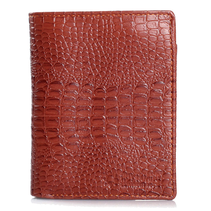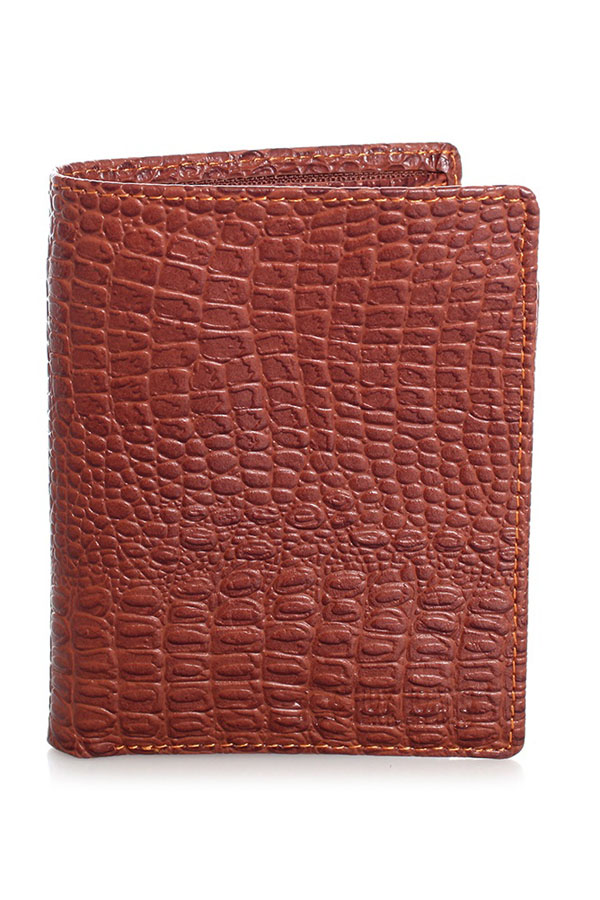 Ví/Bóp nam Huy Hoàng da bò vân cá sấu kiểu đứng màu nâu 2121
