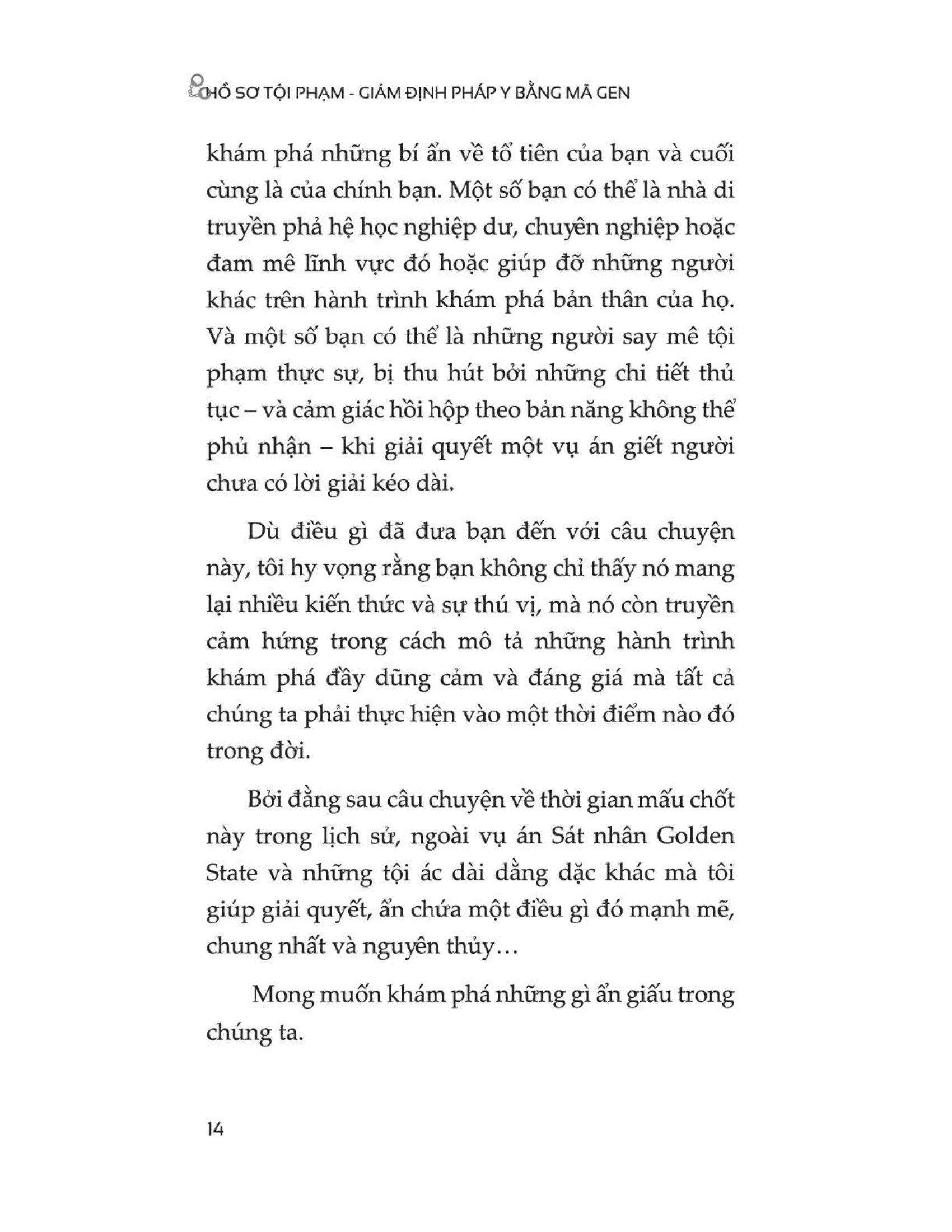 Cuốn sách “HỒ SƠ TỘI PHẠM – GIÁM ĐỊNH PHÁP Y BẰNG MÃ GEN” sẽ dẫn dắt người đọc vào một hành trình sống động qua nhiều vụ án mà chính tác giả đã giải quyết, thường bắt đầu với ít hơn một mẫu DNA.