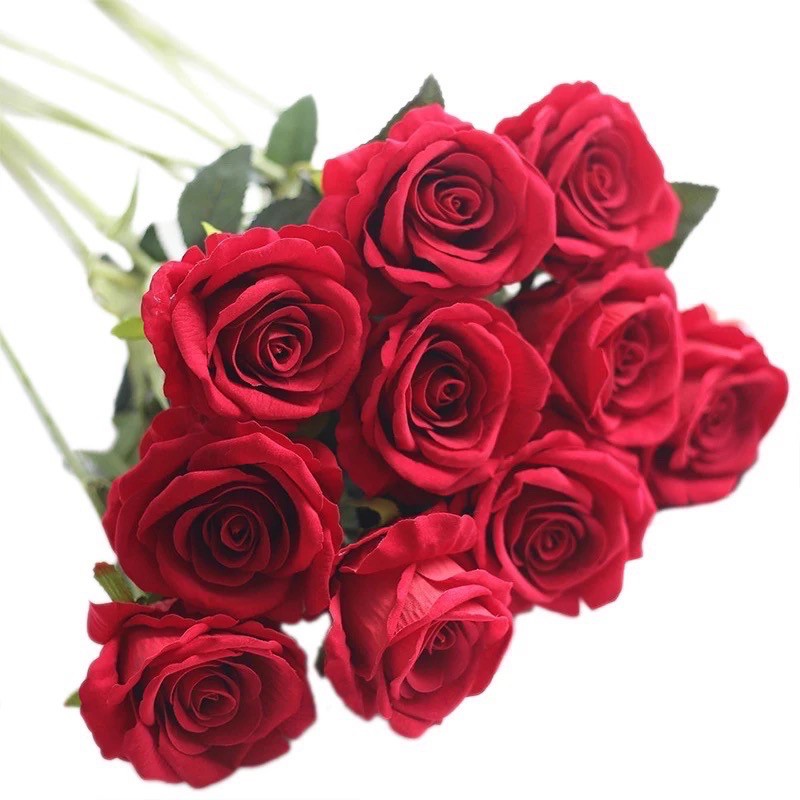 Hoa hồng nhung lụa - dài 40cm - gồm 1 bông Cây giả, hoa lụa Decor trang trí nhà cửa