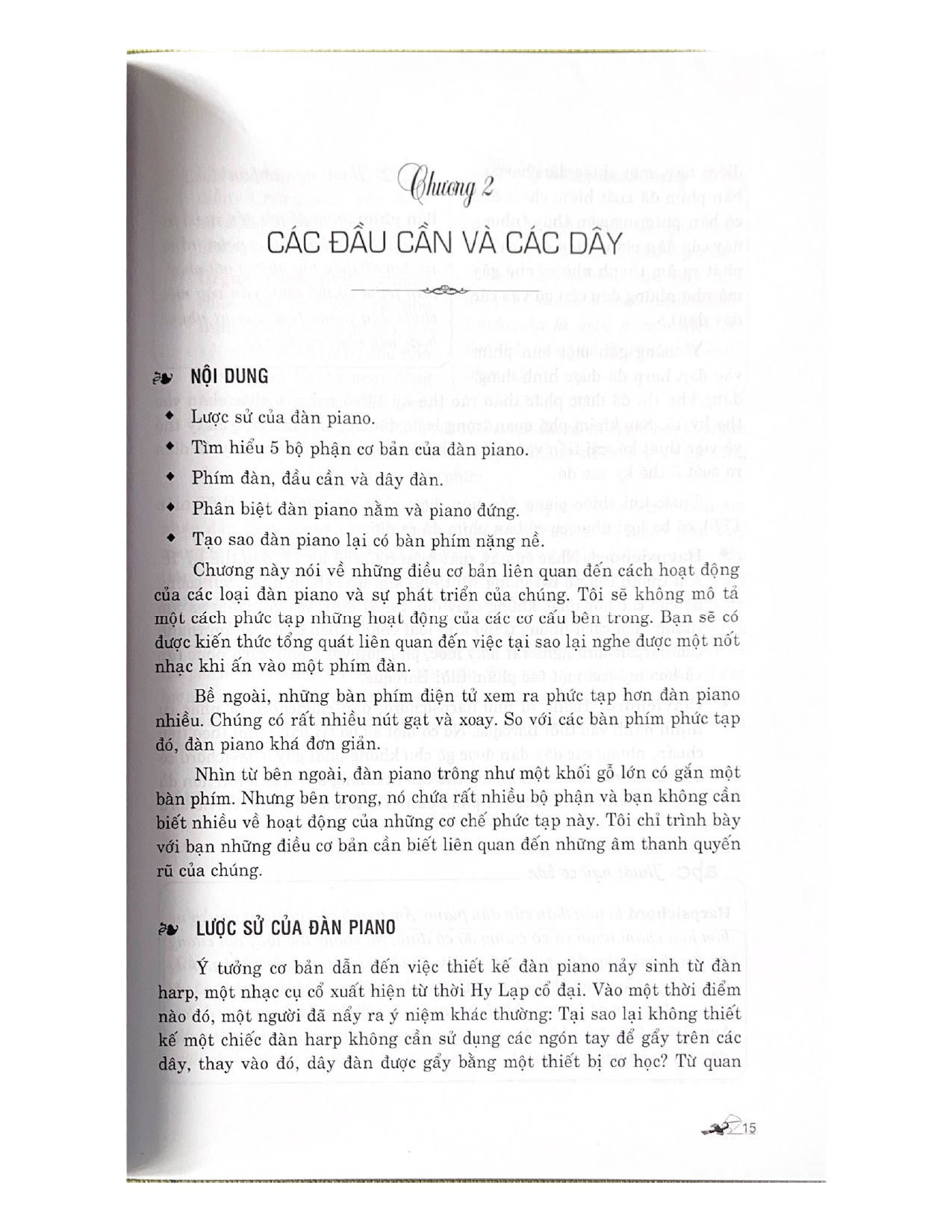 Cuốn sách trình bày chi tiết lịch sử ra đời của đàn Piano, cách phân biệt vạch nhịp, số nhịp, đếm nhịp, cách tập đàn một tay và hai tay. Sau mỗi bài học , sách còn đính kèm những bài luyện tập thiết thực dành cho những học viên không có thời giờ đến các trung tâm dạy nhạc. Có cuốn sách học đàn Piano bên cạnh , bạn có thể yên tâm tự học và tự tin trình diễn những bản nhạc từ đơn giản đến phức tạp của đàn Piano hay bất cứ loại nhạc cụ có bàn phím nào khác .