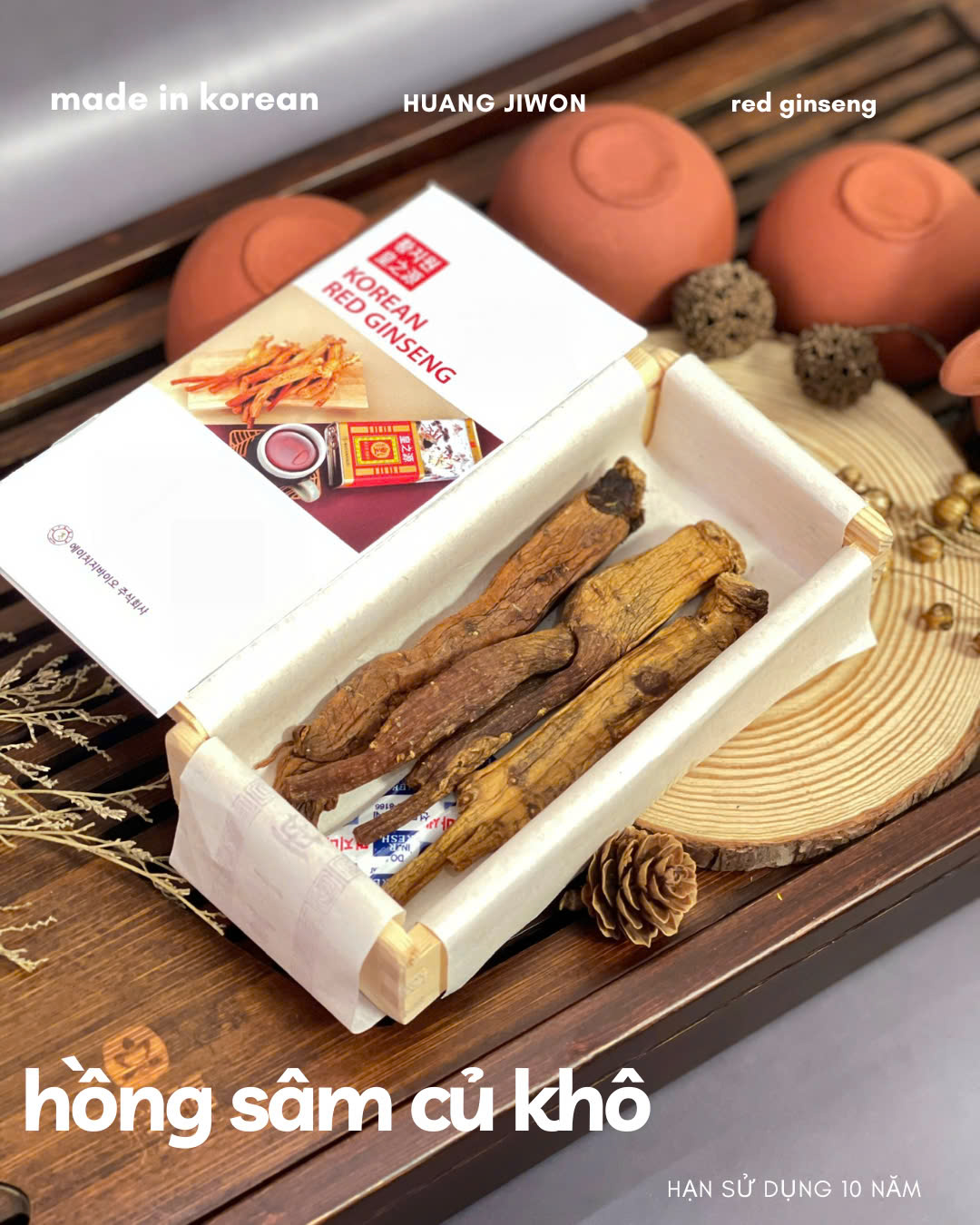 HỒNG SÂM CỦ KHÔ HỘP 600G - Hồng sâm củ khô 6 năm tuổi truyền thống. - Hộp kích cỡ vừa phải thích hợp dùng trong thời gian dài hoặc làm quà biếu - Sản