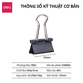 Hộp 12 Kẹp Bướm 25mm - Deli E38564 Kích thước vô cùng nhỏ gọn và tiện dụng, thích hợp để kẹp những liên giấy nhỏ và mỏng, như biên lai, hoá đơn. Kẹp làm bằng