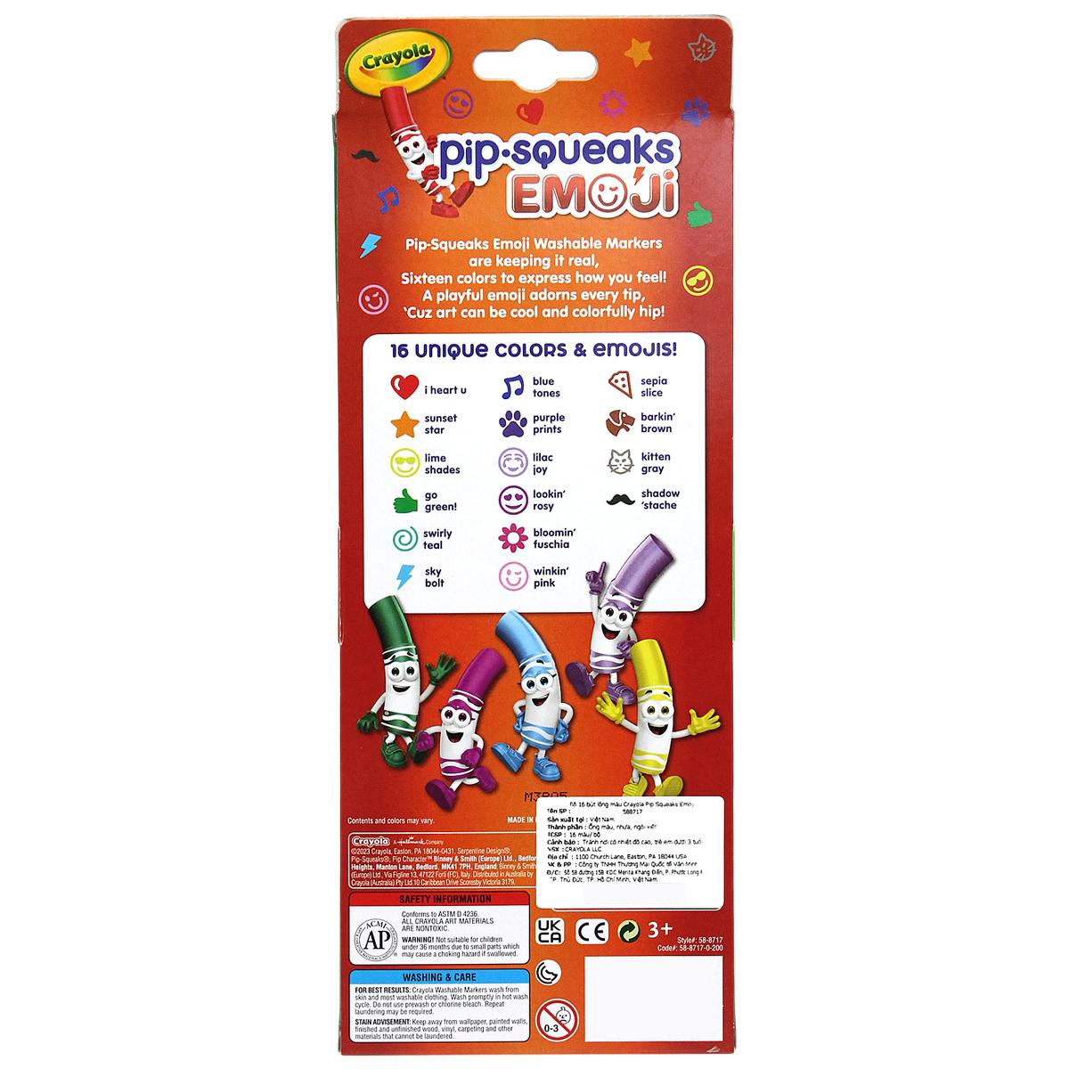 Mua tại TiktokHộp 16 Bút Lông Màu Pip Squeaks Emoji - Dễ Tẩy Rửa - Crayola 588717