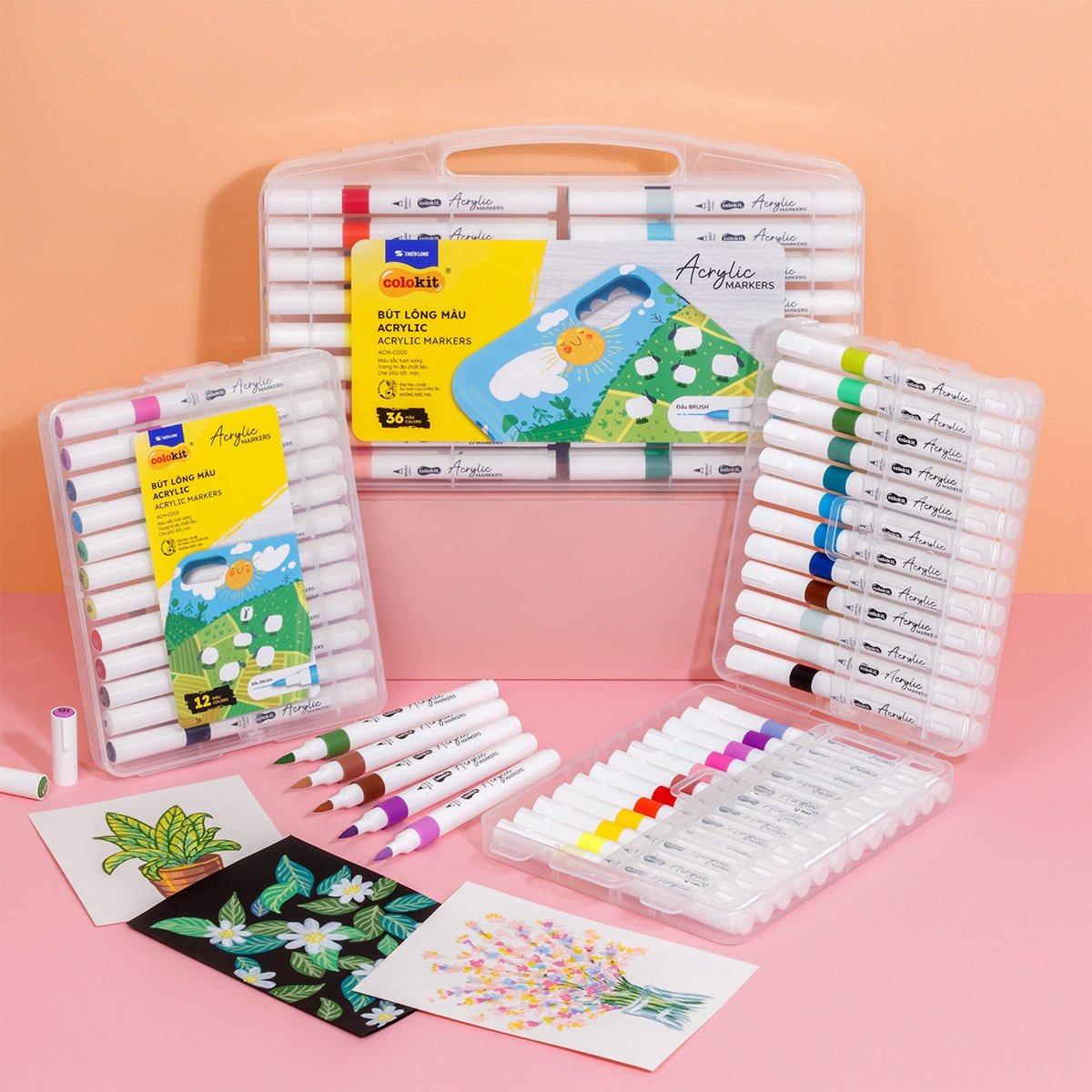 Hộp 36 Bút Lông Màu Acrylic Markers 1 Đầu - Colokit ACM-C005 Bút lông màu Acrylic Markers 1 đầu Thiên Long Colokit 36 màu với thiết kế đầu BRUSH linh hoạt đáp ứng được đa