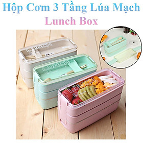 ✨Hộp Cơm 3 Tầng Lúa Mạch Lunch Box + Tặng Kèm Muỗng, Nĩa