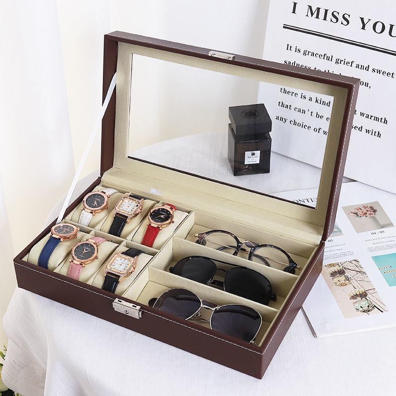 Hộp thiết kế 1 tầng đựng 6 chiếc đồng hồ và 3 mắt kính