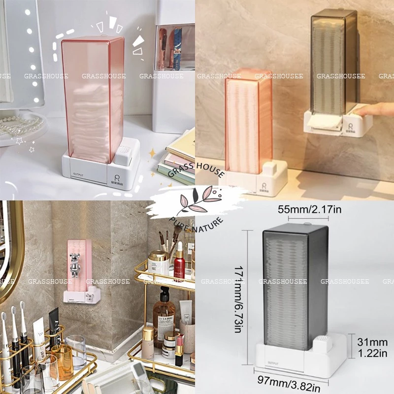 ✨HỘP ĐỰNG BÔNG TẨY TRANG TREO TƯỜNG HOẶC ĐỂ TRÊN BÀN CÓ NÚT BẤM TIỆN DỤNG CHỐNG BỤI
